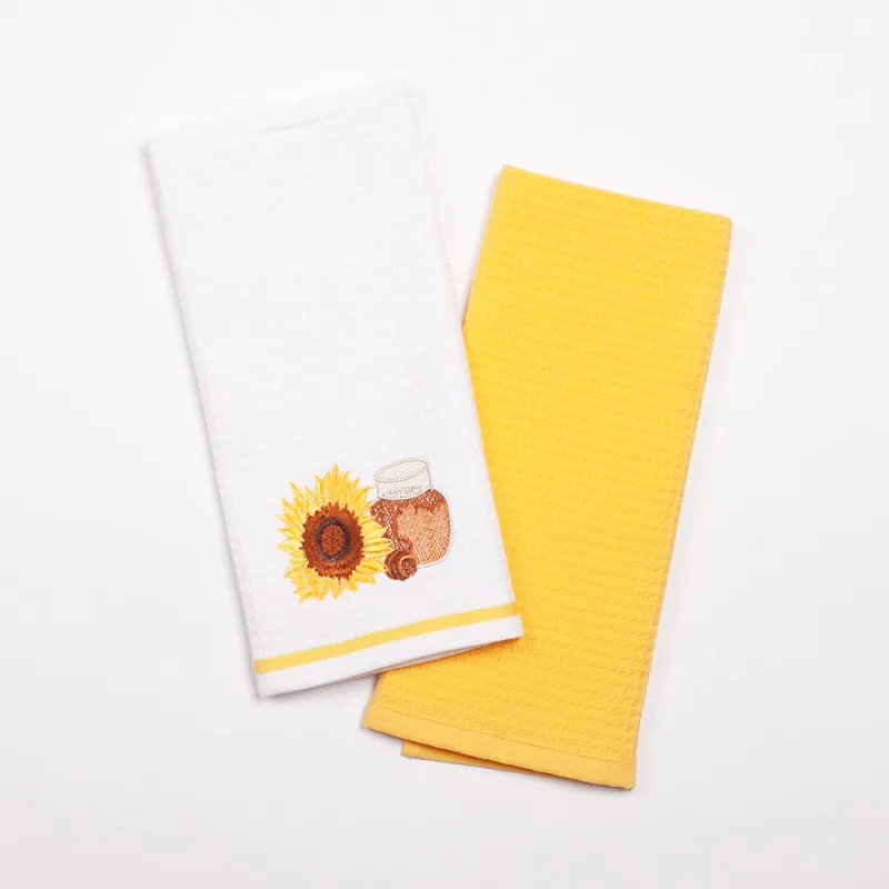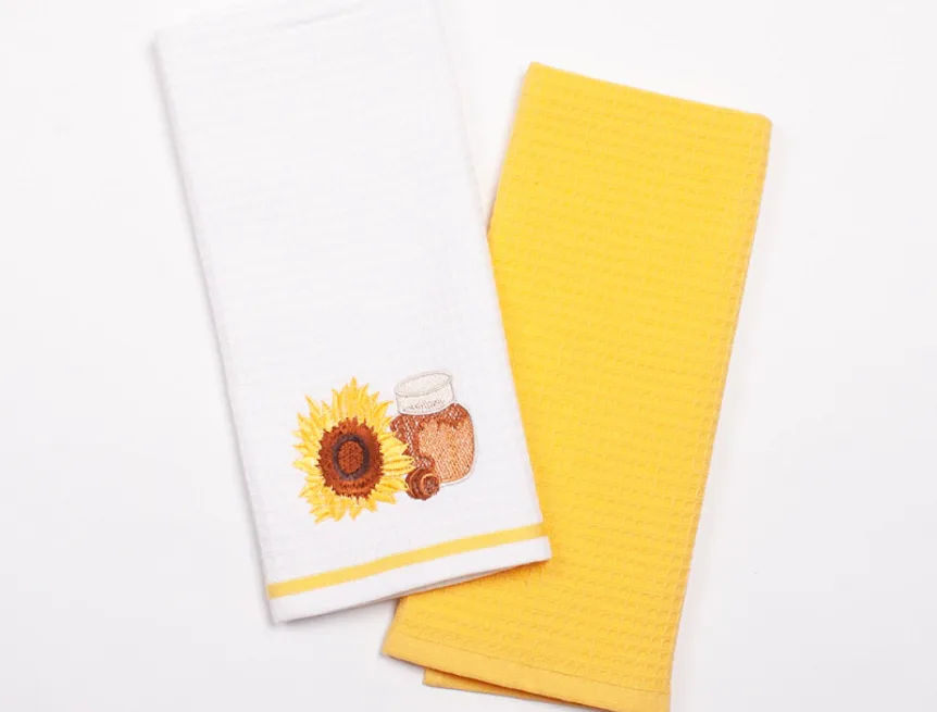 Atraktivní a precizně provedené lesklé výšivky se skvěle doplňují s okouzlujícími barevnými odstíny napříč celou kolekcí vaflových utěrek.