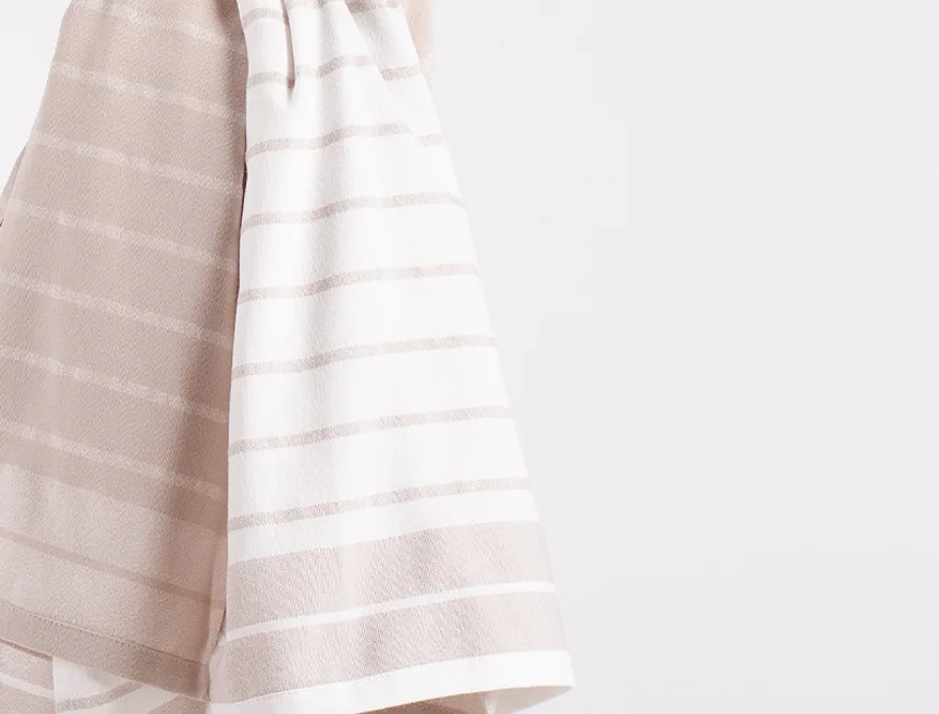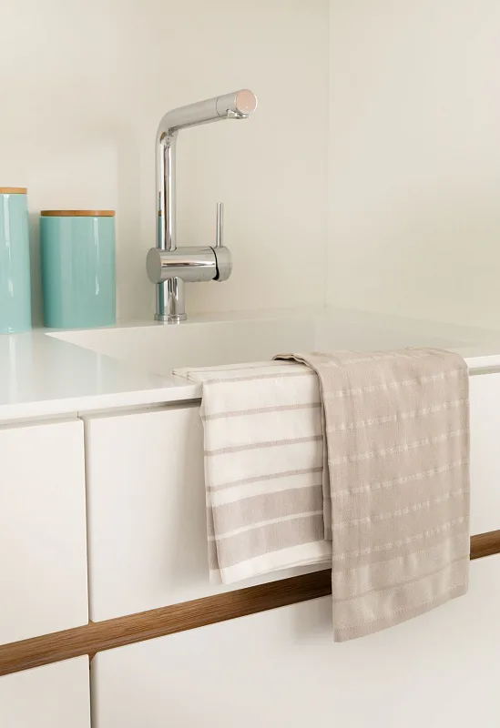 Tradiční design v kombinaci s moderními pastelovými barvami činí z kolekce bavlněných utěrek Tiny skvělé pomocníky do každé kuchyně. Utěrky mají všechny čtyři strany lemované a jsou opatřeny praktickým poutkem pro zavěšení.