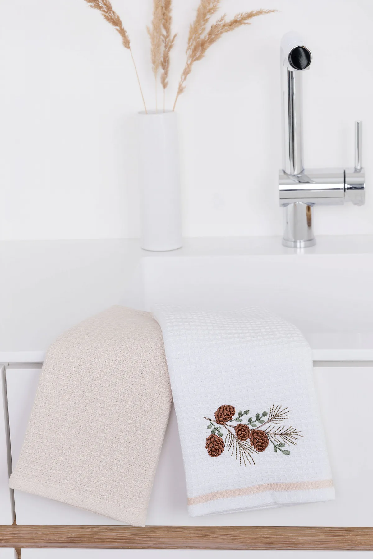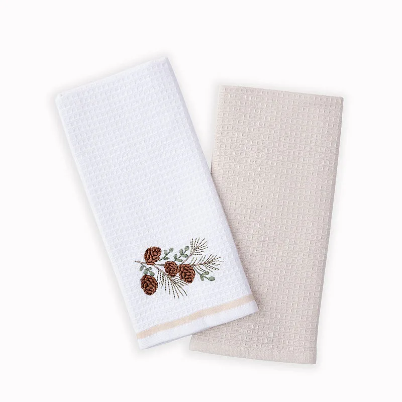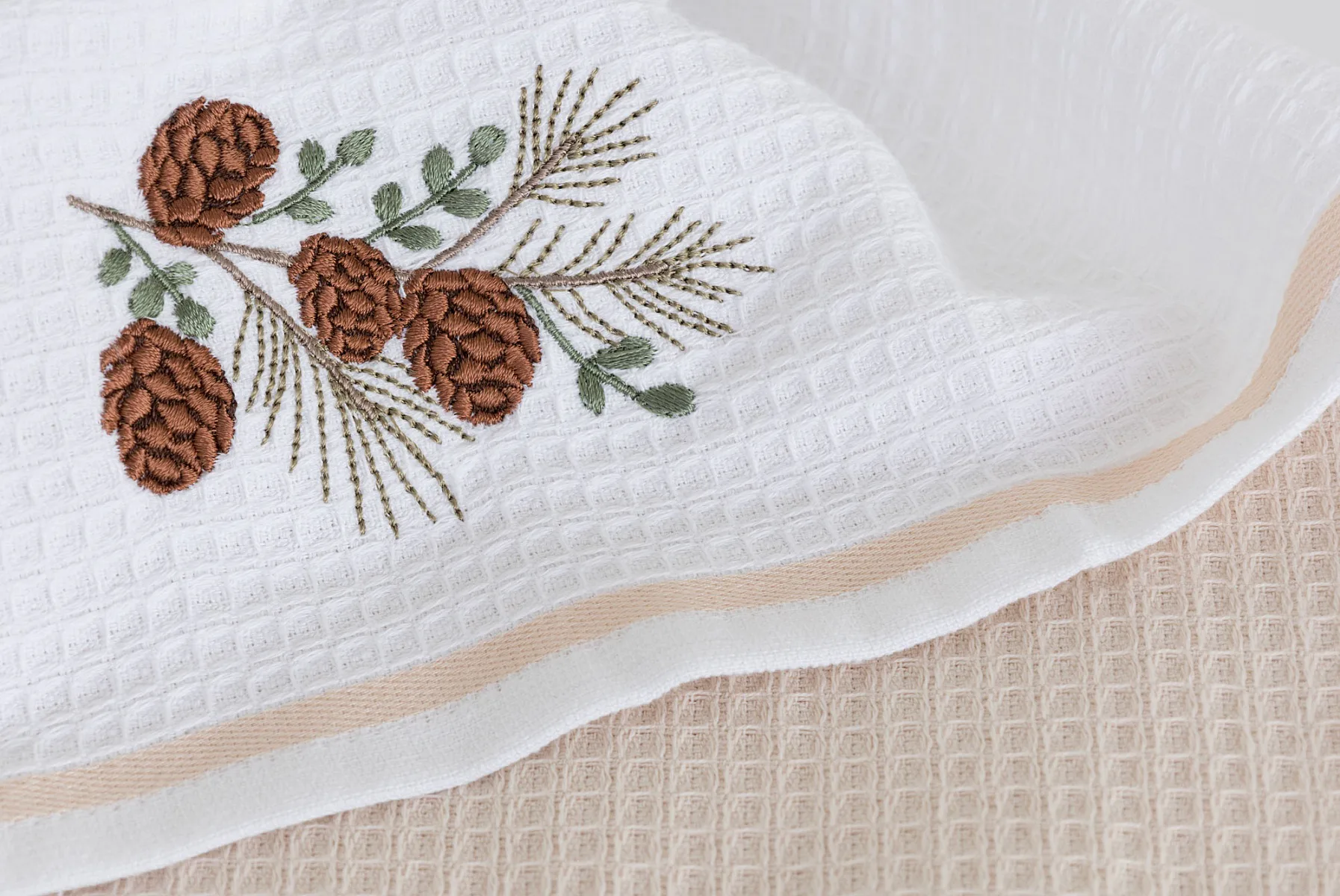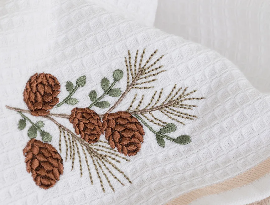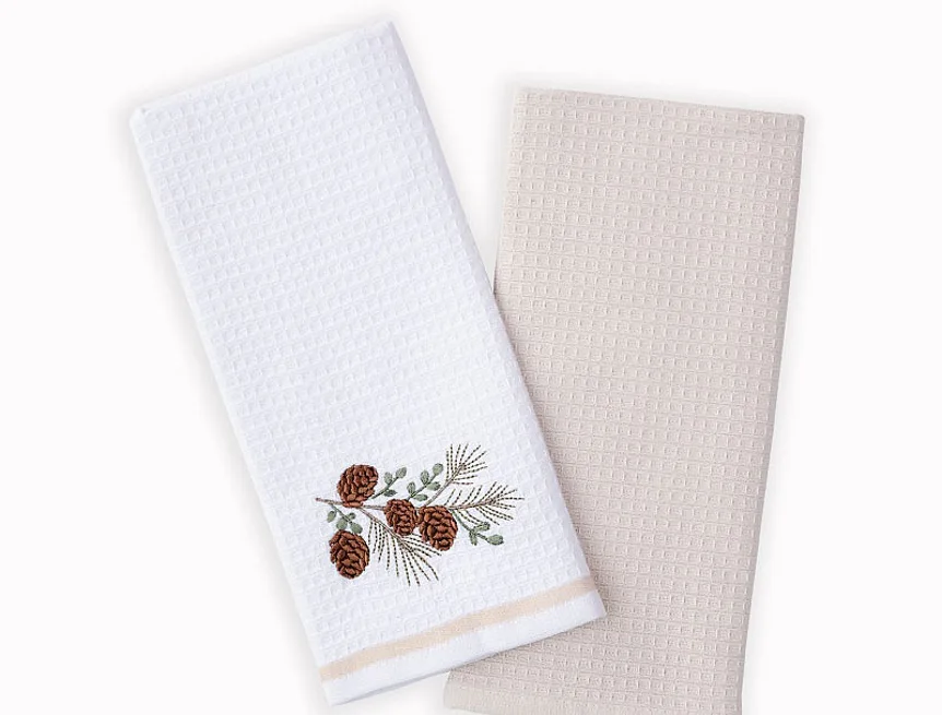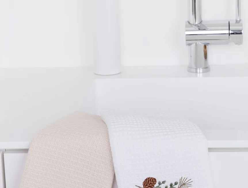 Atraktivní a precizně provedené lesklé výšivky se skvěle doplňují s okouzlujícími barevnými odstíny napříč celou kolekcí vaflových utěrek.