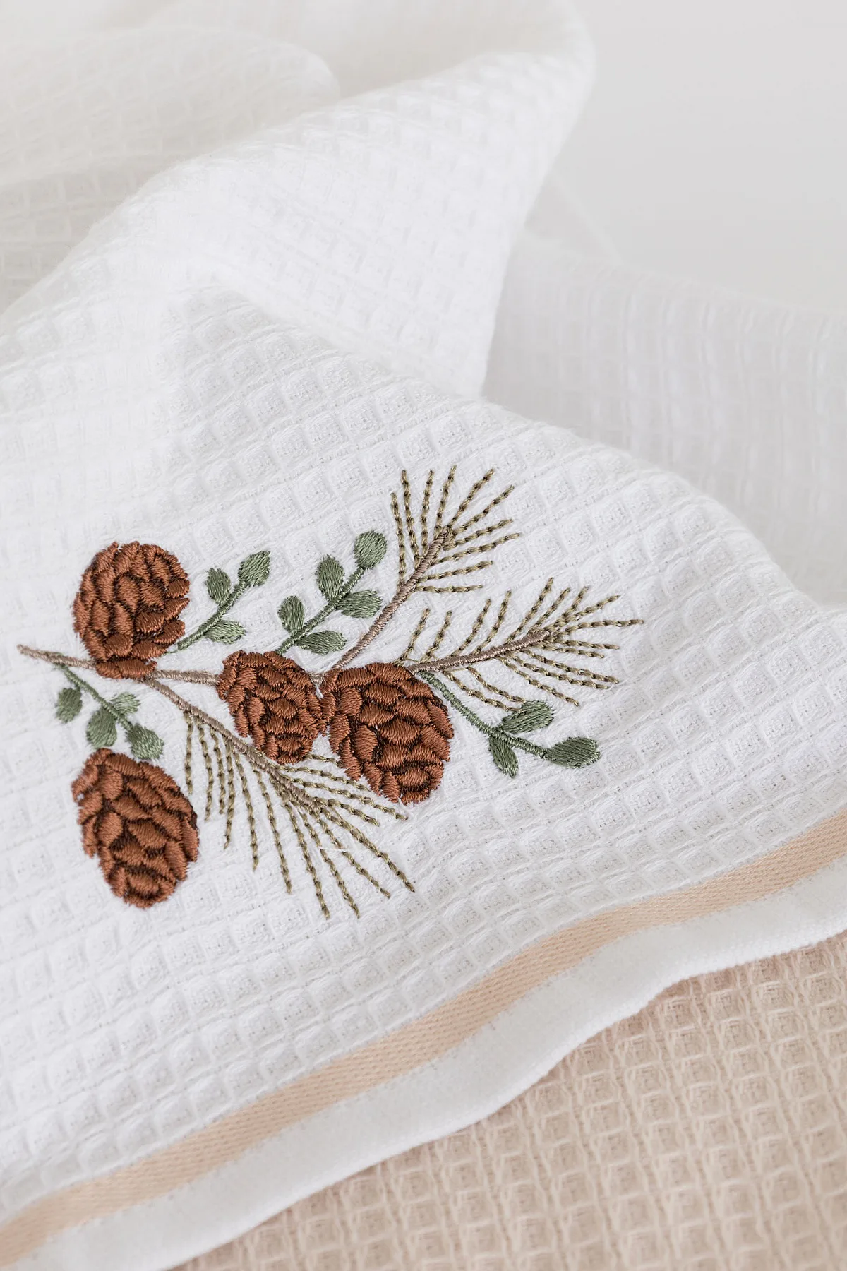 • 1x bílá utěrka s výšivkou a béžovou bordurou