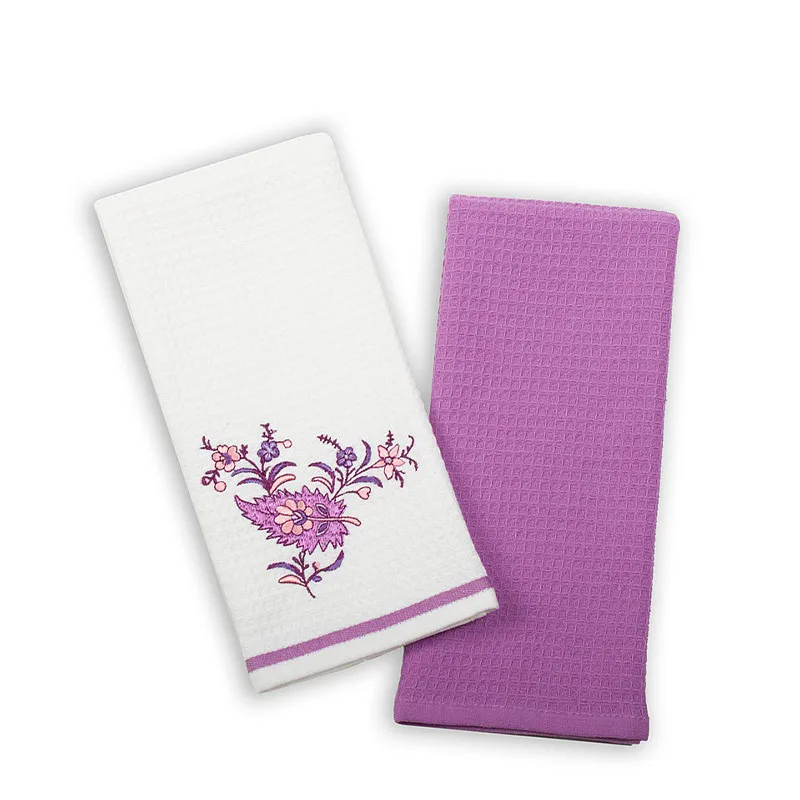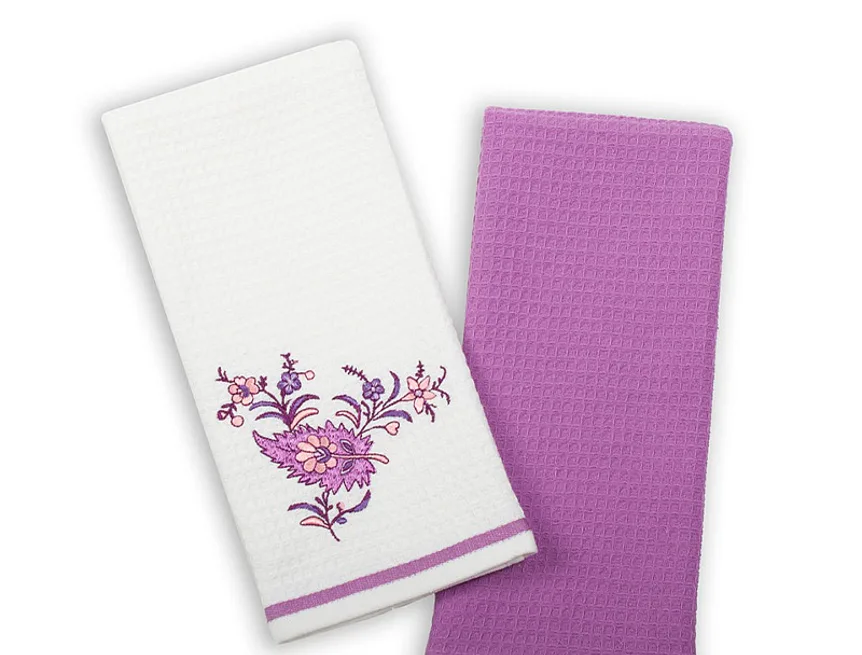 Atraktivní a precizně provedené lesklé výšivky se skvěle doplňují s okouzlujícími barevnými odstíny napříč celou kolekcí vaflových utěrek.