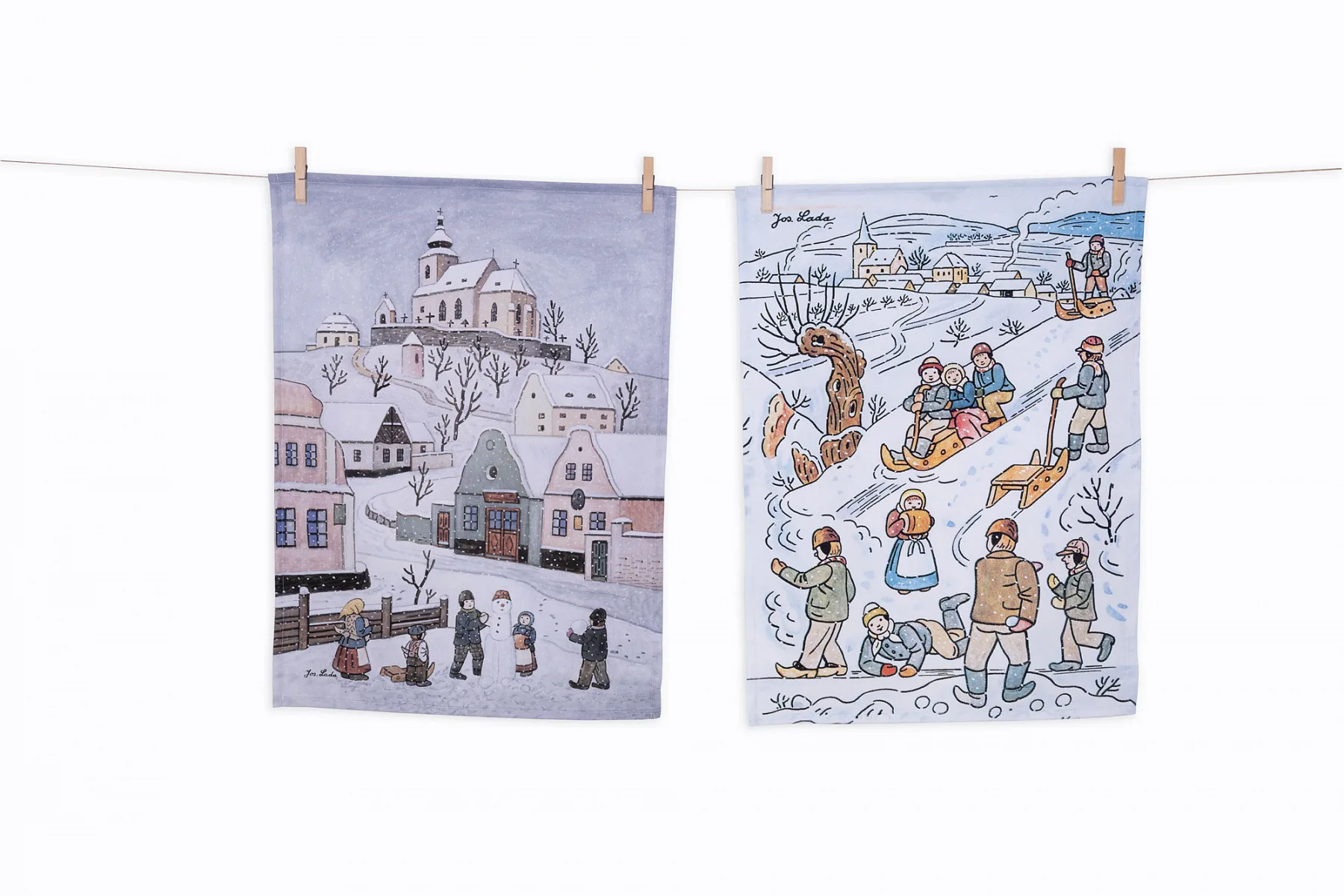 Kuchyňské utěrky Zima & Zimní zábavy se díky nejmodernější digitální tiskové technologii pyšní nádhernými barvami a precizními detaily, které vykreslují autentickou ladovskou poetiku.