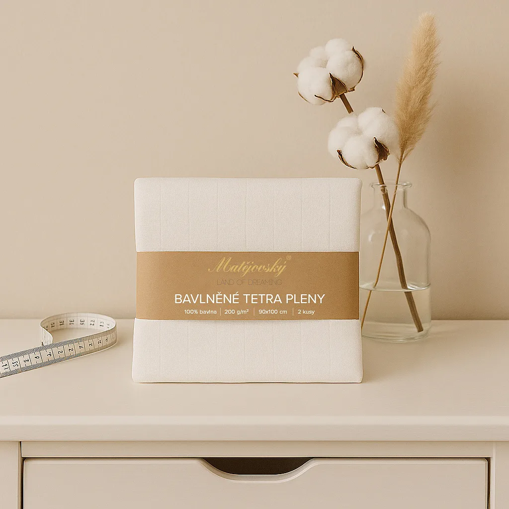 Vyrobili jsme pro Vás bavlněné tetra pleny s vysokou gramáží 200 g/m2. Dva okraje jsou pevné a dva jsou šité, zaručeno je precizní zpracování konfekce a tvarová stálost po praní.