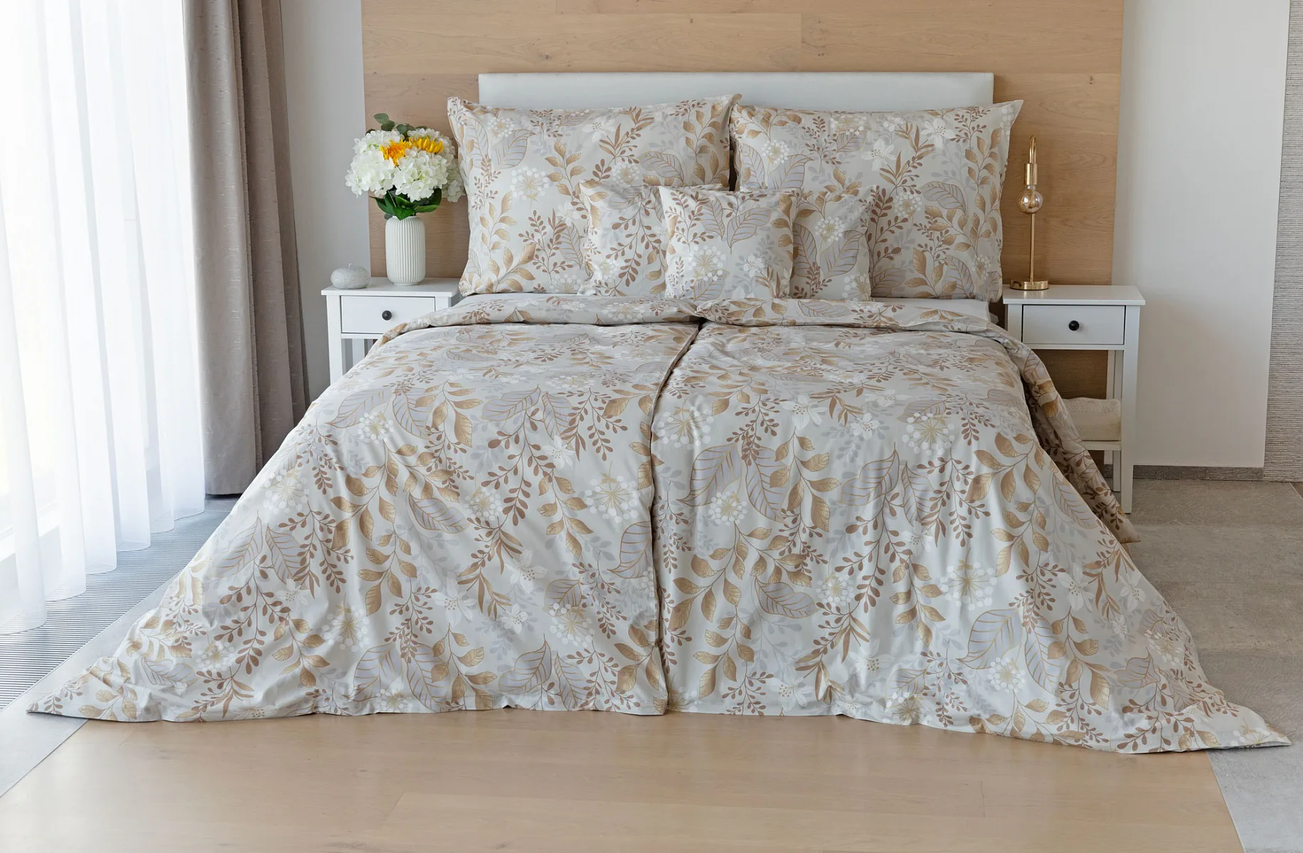 With the charming Libertine bedding, your bedroom will always be impressively elegant. The delicate floral motif in a palette of beige, brown and light grey tones is in perfect harmony with the ivory-coloured base.