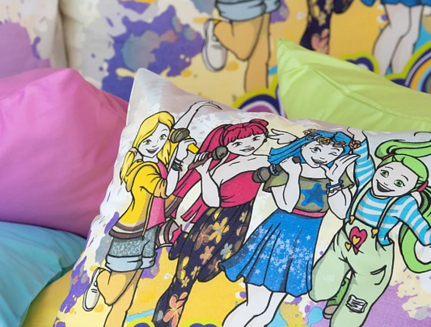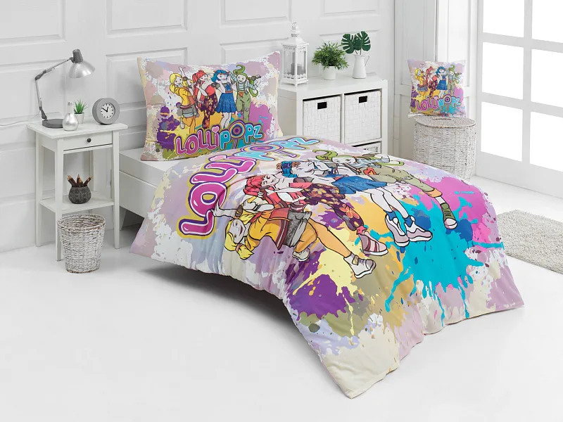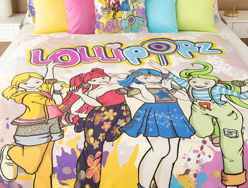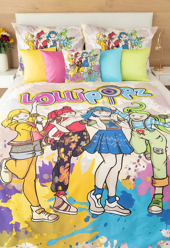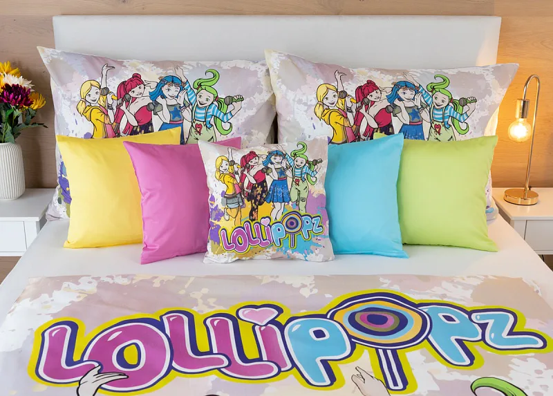Your children will be delighted with the cotton bedding with the motif of the Czech music and dance group Lollipopz! The colorful pattern shines with energy, just like the cheerful creation of this popular foursome of girls.