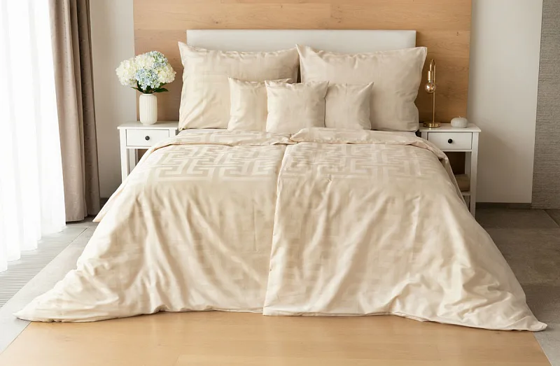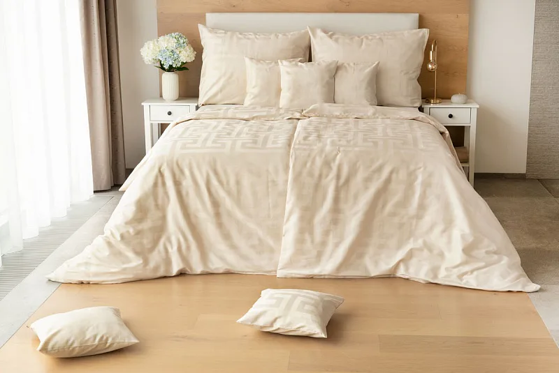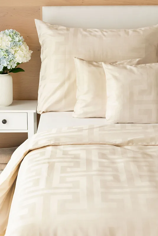 The new Louvre damask bedding collection will completely enchant you with its original jacquard pattern and carefully selected natural colors. Enjoy royal comfort and a sense of luxury every night with Louvre Cream bedding in a natural cream shade.