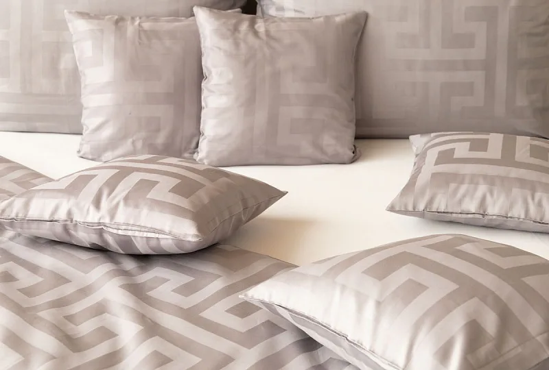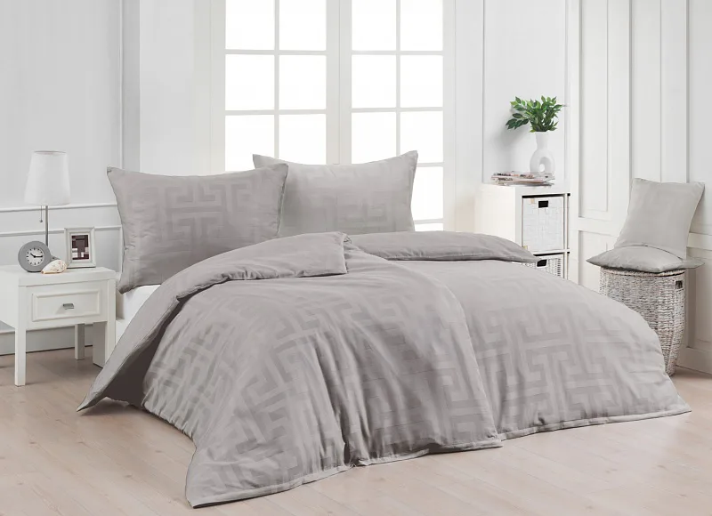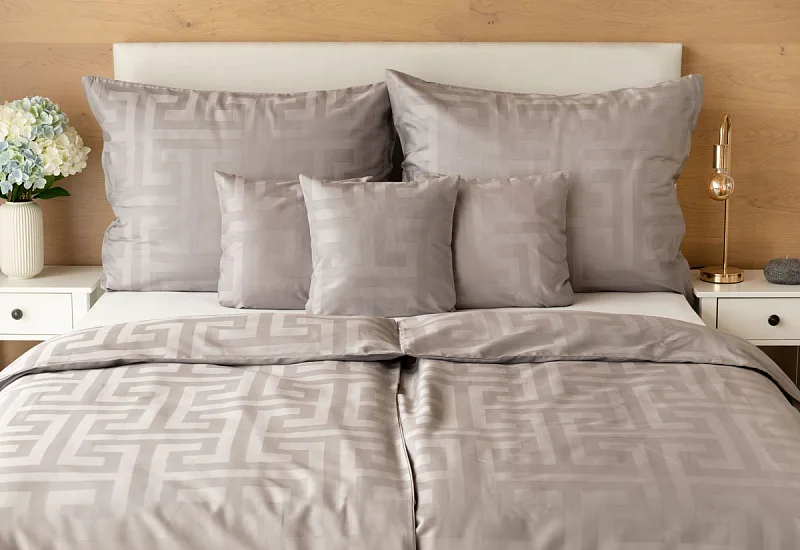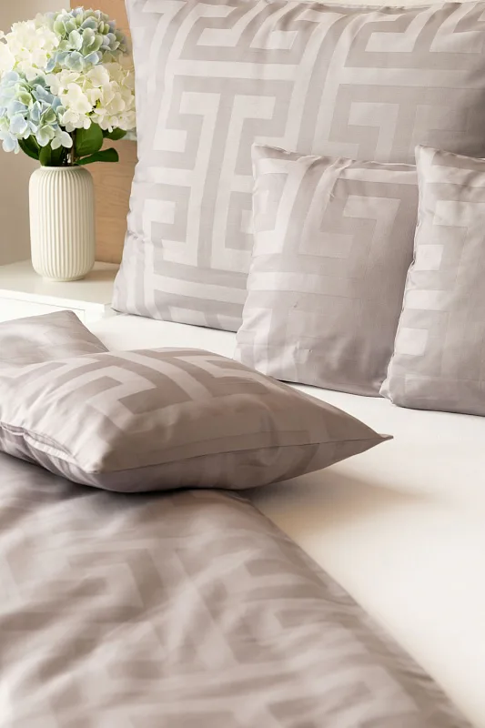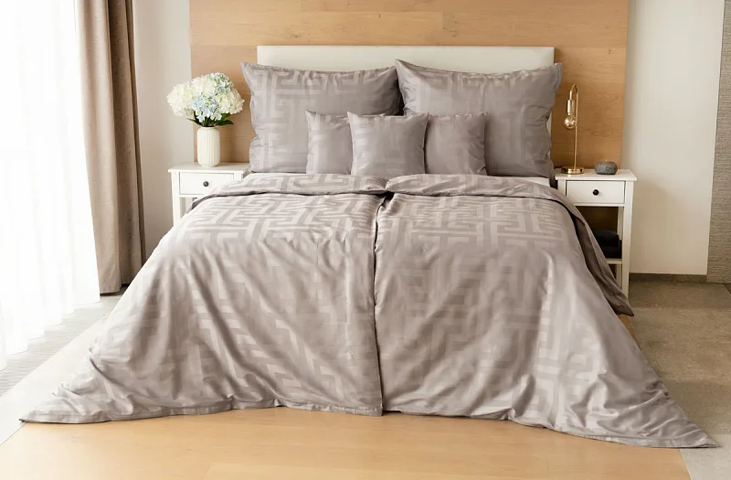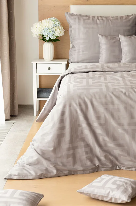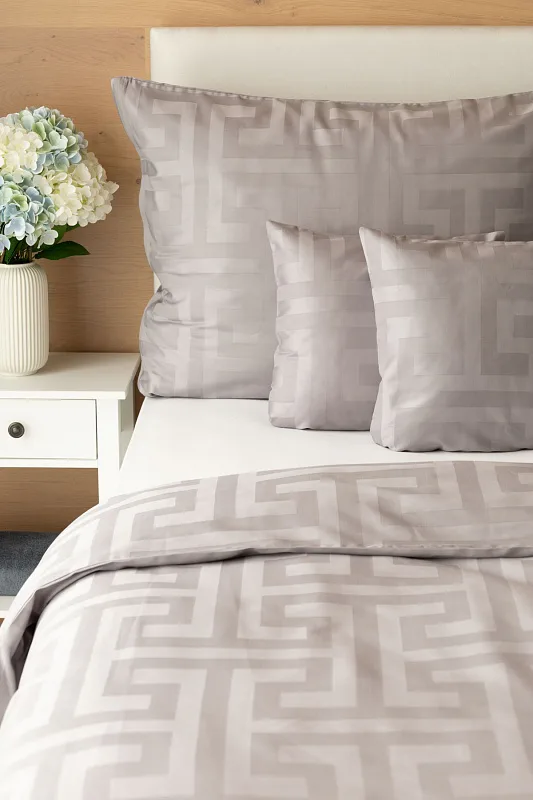 The new Louvre damask bedding collection will completely enchant you with its original jacquard pattern and carefully selected natural colors. Enjoy royal comfort and a sense of luxury every night with Louvre Grey bedding in a shade of pastel grey.