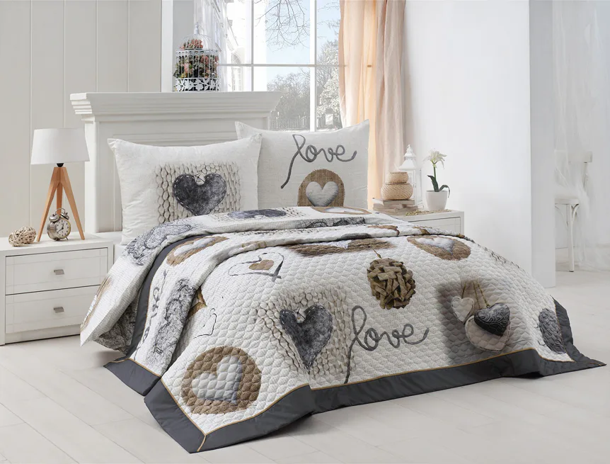 Bedspread is both, elegant and practical addition that will make your bed always perfect. Surface material is a 100% cotton fabric with the same design as the bedding has. Decorative stitching is over the entire surface to ensure the stability of the filling.