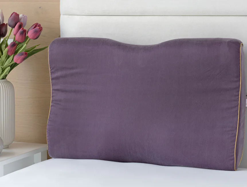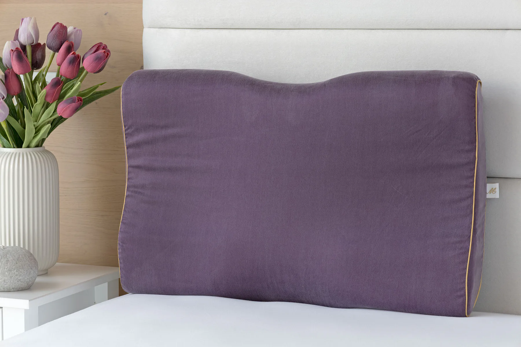 Vnitřní výplň polštáře tvoří paměťová visco pěna. Díky inovativnímu ergonomickému tvaru podporuje přirozené zakřivení krční páteře a uvolňuje tlak na šíji i ramena. Pomáhá předcházet bolestem krku, hlavy, ramen i zad a přispívá ke zdravému a spokojenému spánku.