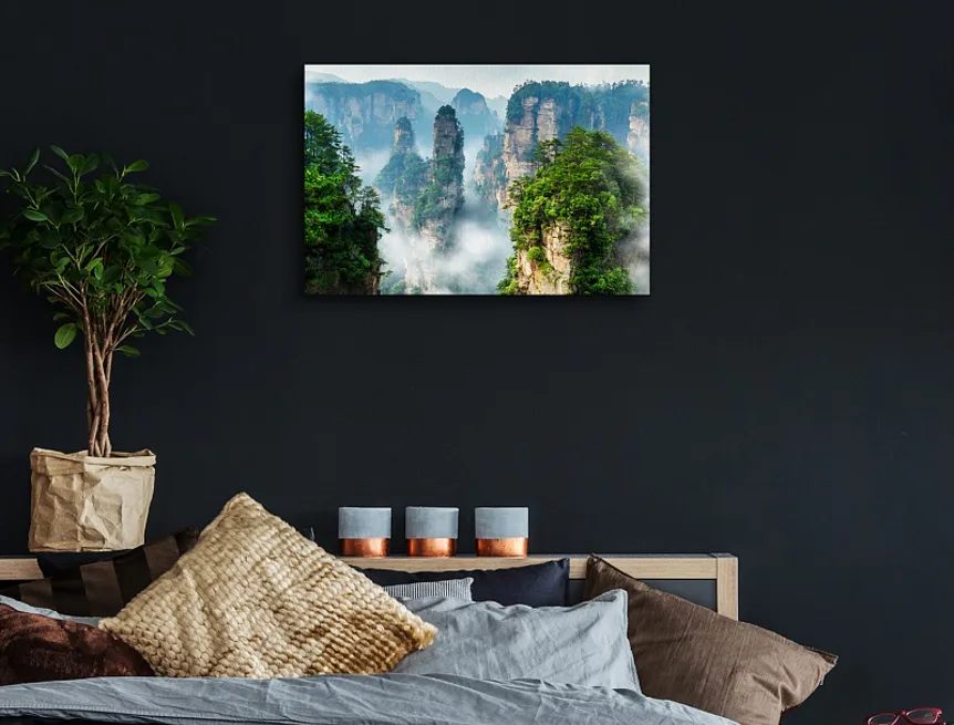 Dodejte interiéru nevšední atmosféru s obrazem Misty Mountains. Vzor obrazu je vytištěn na prémiovém bavlněném plátně s nepravidelnou strukturou canwas PowerSol Satin. Povrch je odolný proti protržení a navíc dodává plátnu sametový vzhled. Obraz dodáváme již napnutý na dřevěném rámu, je opatřen závěsem pro umístění na stěnu.
