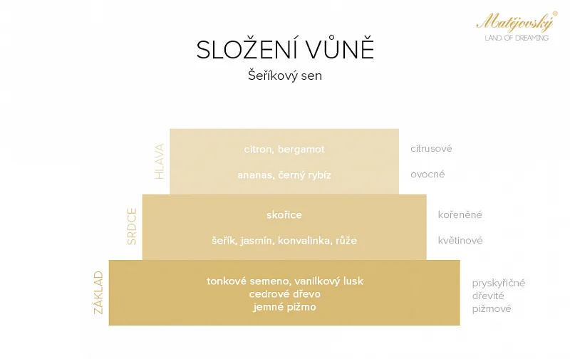 Vůně Šeříkový sen Vás obklopí autentickou květinovou vůní připomínající čerstvě natrhané květy šeříku.