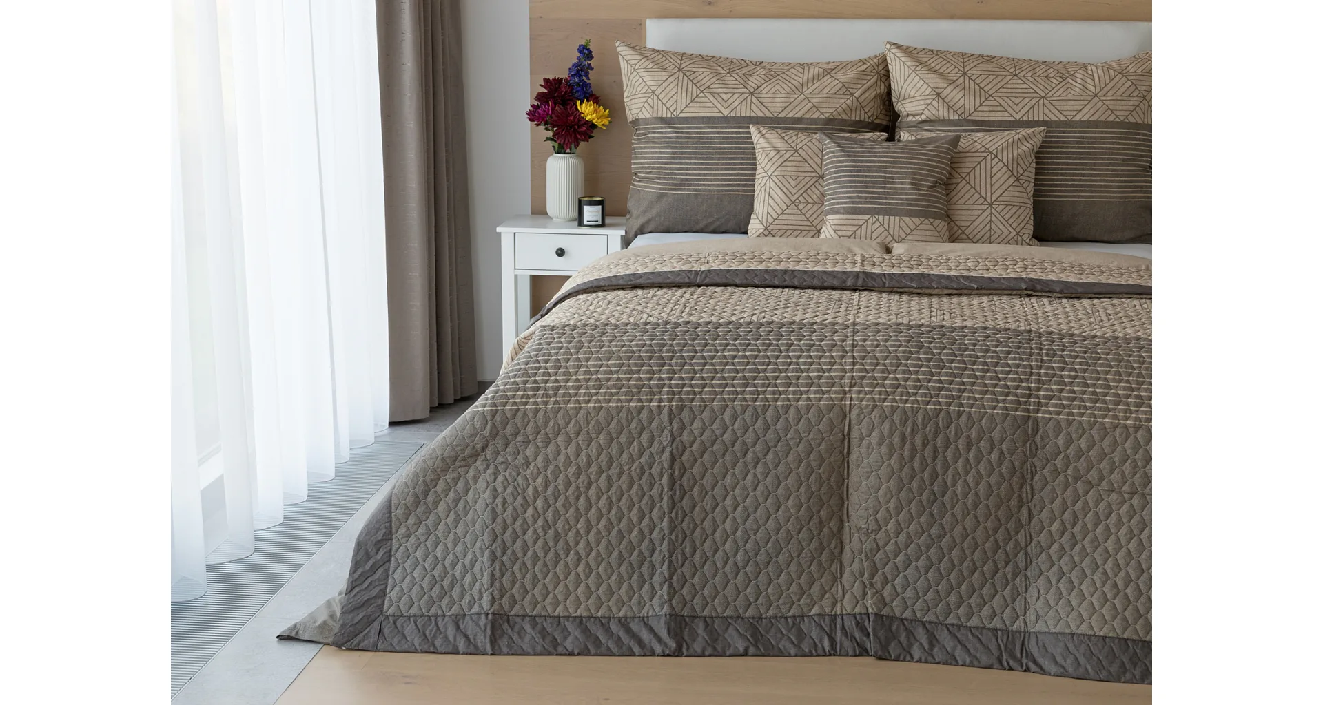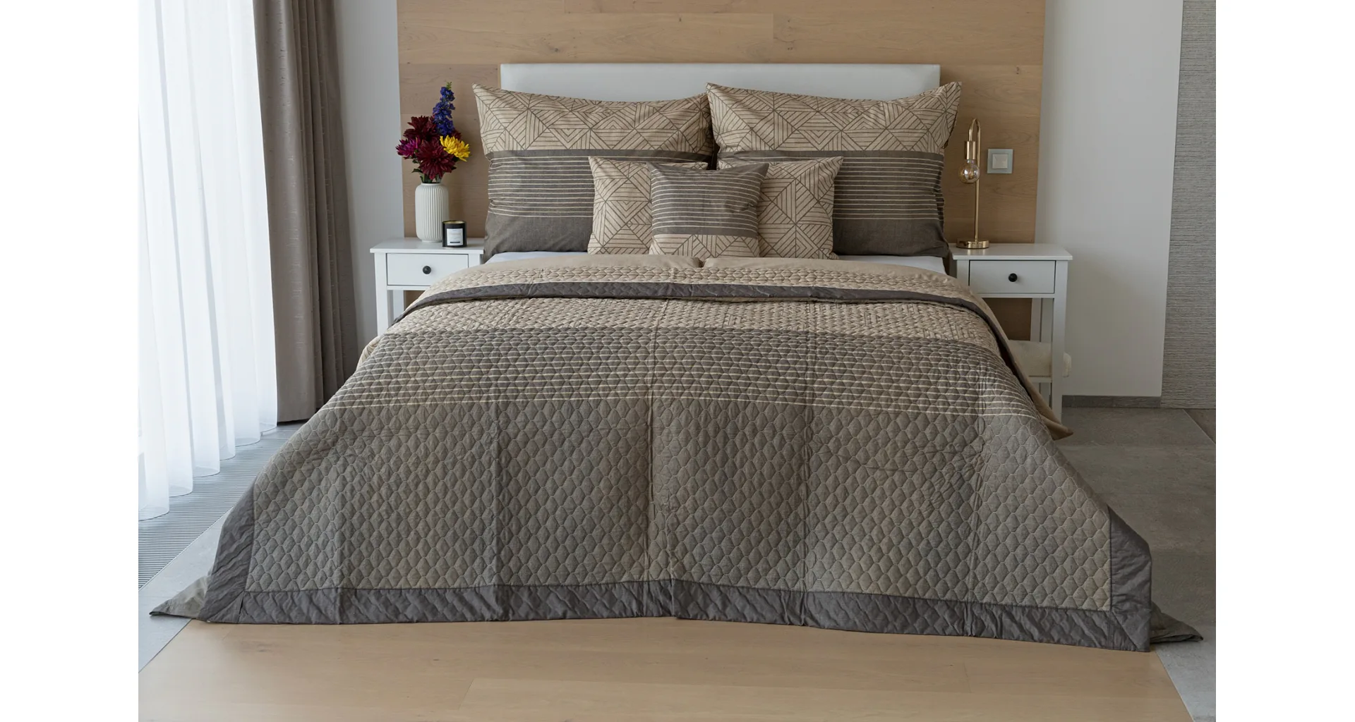 The Pietro bedspread is a unique aesthetic and practical accessory with which your bed will always be perfectly made. The surface material consists of 100% cotton fabric in the same pattern as the bed linen. Decorative stitching is applied over the entire surface to ensure the stability of the filling.