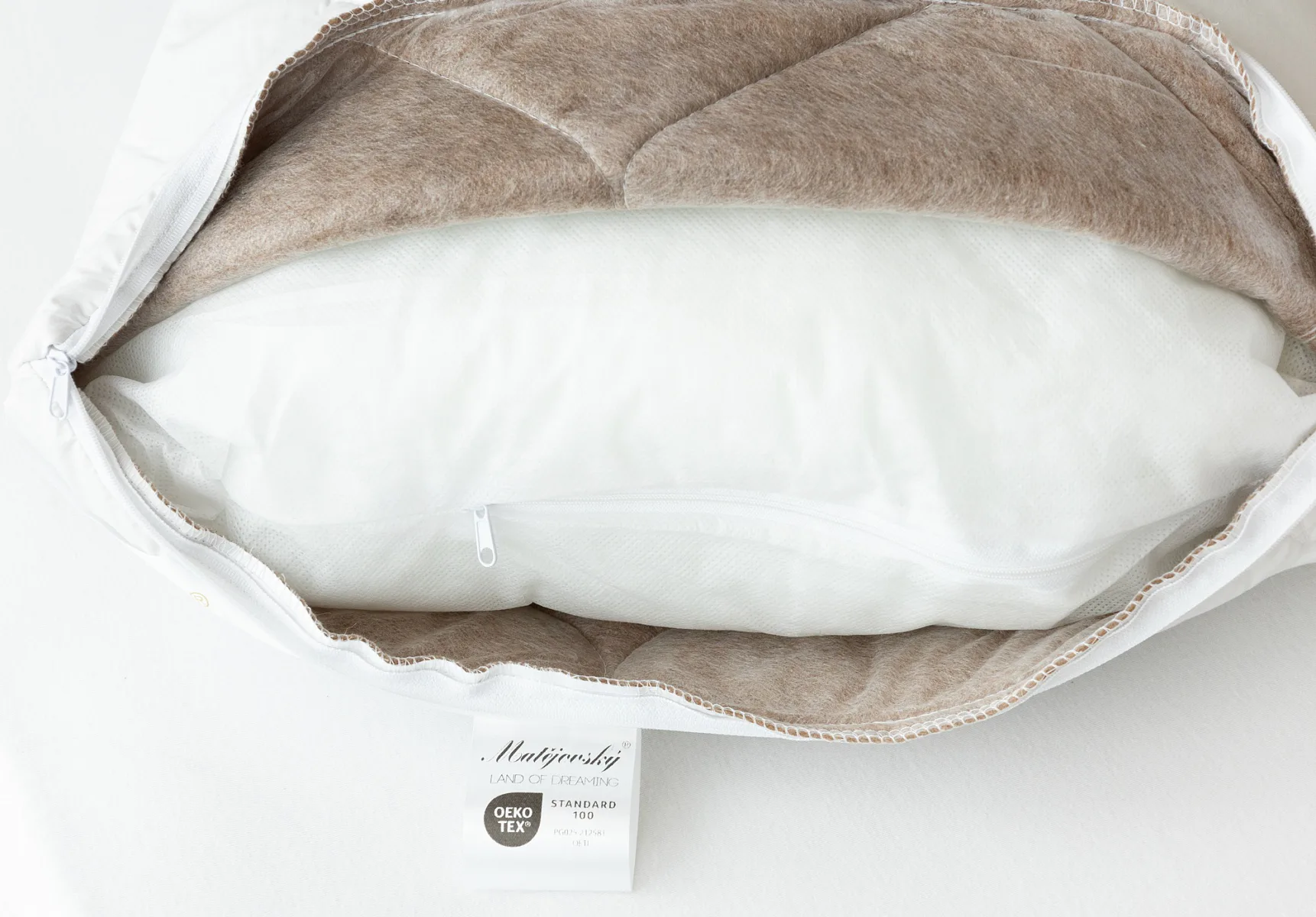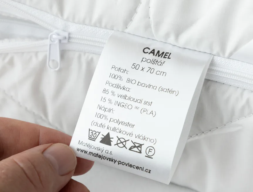 Polštáře z řady Camel splňují kritéria mezinárodní certifikace Oeko-Tex Standard 100 a potahová látka disponuje navíc certifikací GOTS (garantovaný obsah bio certifikovaných vláken minimálně 95 %).