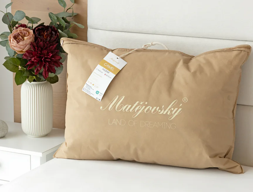 Polštáře z naší nové luxusní kolekce CAMEL vás nadchnou kvalitním zpracováním a plně funkčními užitnými vlastnostmi. Velbloudí srst našla své uplatnění při výrobě lůžkovin díky mimořádným termoregulačním vlastnostem, které zajistí váš klidný spánek bez teplotních výkyvů.