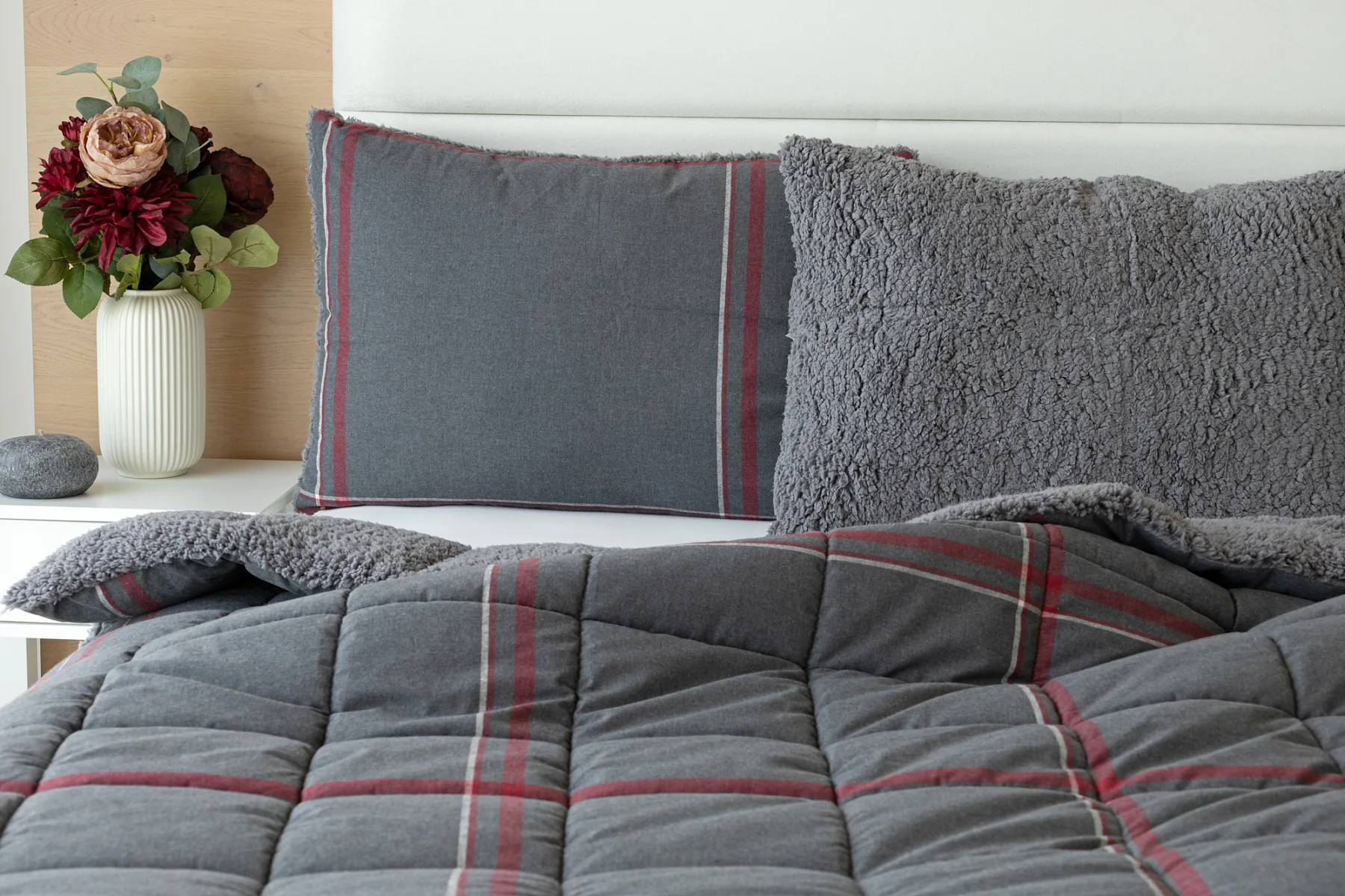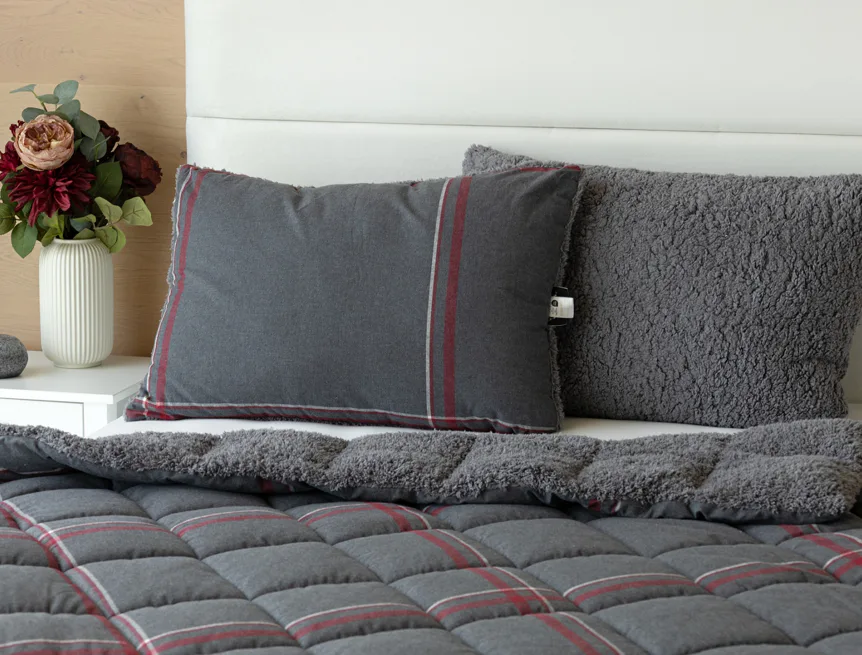 Nová kolekce flanelových polštářů s beránkem vám zajistí jedinečný tepelný komfort a úžasné pohodlí během sychravých dnů, chladných večerů a zimních nocí. Vrchní stranu polštáře tvoří hebký flanel s jemným chloupkem, spodní stranu pokrývá hřejivý nadýchaný beránek. Vrchní potah je snímatelný s praktickým zipovým uzávěrem na boku. Vnitřní výplň tvoří nadýchané polyesterové nano vlákno, které chrání potah z netkané textilie.