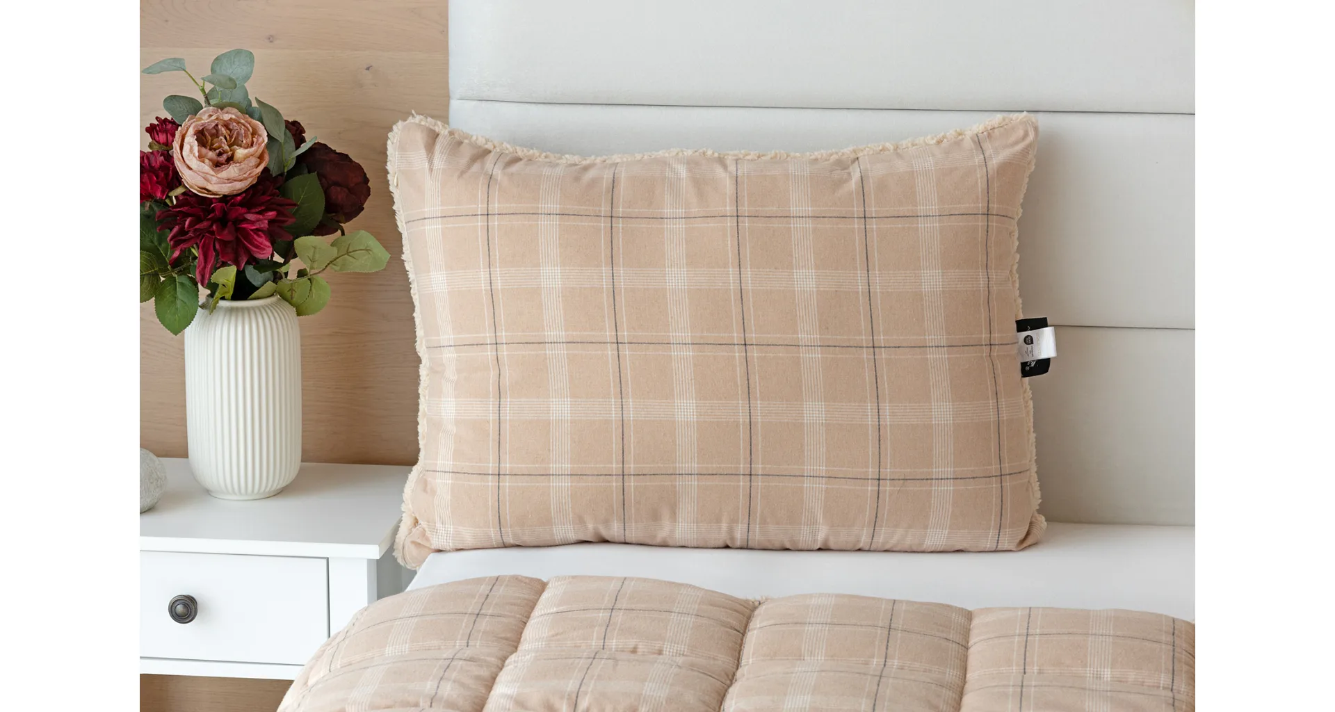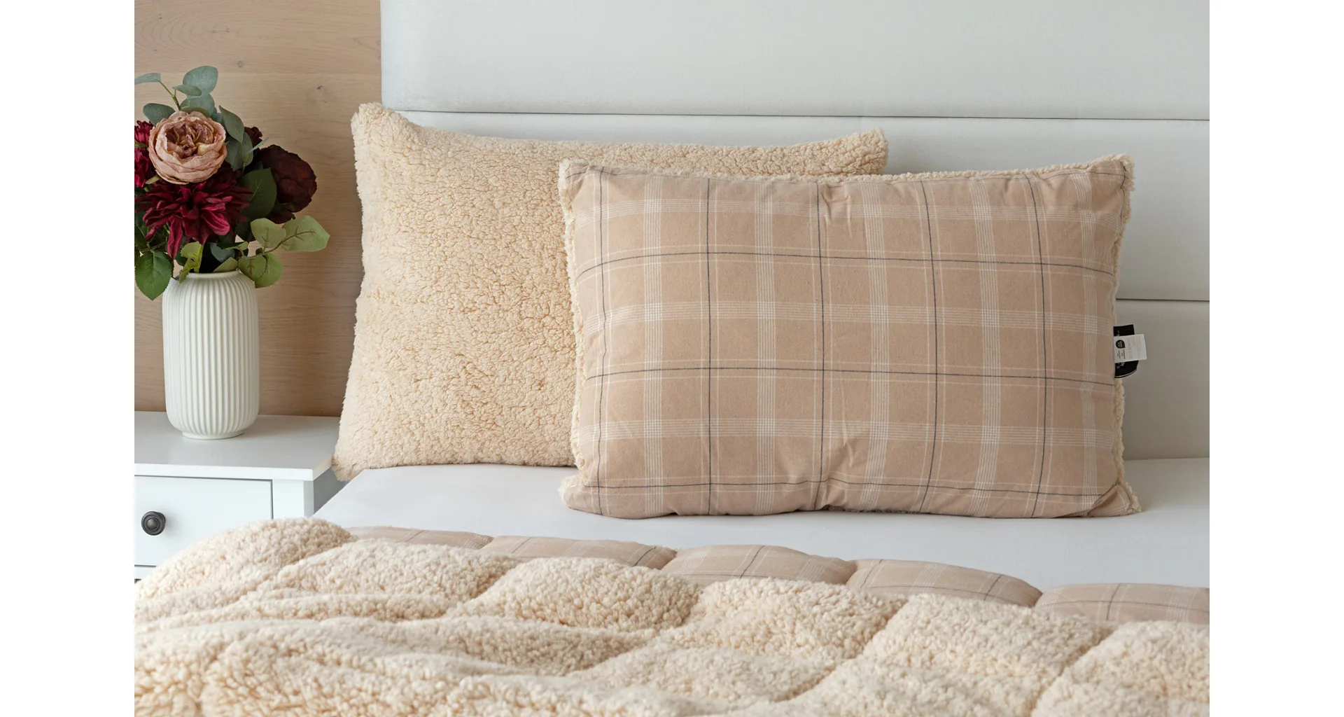 Nová kolekce flanelových polštářů s beránkem vám zajistí jedinečný tepelný komfort a úžasné pohodlí během sychravých dnů, chladných večerů a zimních nocí. Vrchní stranu polštáře tvoří hebký flanel s jemným chloupkem, spodní stranu pokrývá hřejivý nadýchaný beránek. Vrchní potah je snímatelný s praktickým zipovým uzávěrem na boku. Vnitřní výplň tvoří nadýchané polyesterové nano vlákno, které chrání potah z netkané textilie.