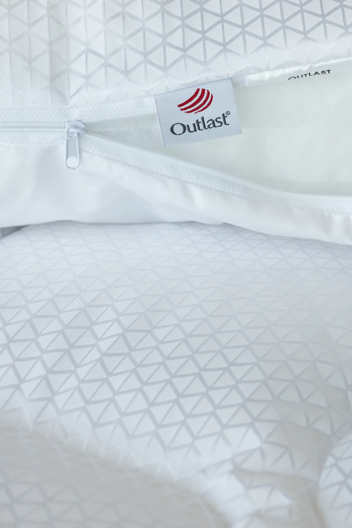 Outlast je pokročilý textilní materiál, který byl původně vyvinut pro použití v kosmickém průmyslu. Outlast obsahuje mikrokapsle nazývané "termokapsle" nebo "phase change materials" (PCM), které aktivně absorbují, uchovávají a uvolňují teplo. Díky tomu udržuje tento jedinečný materiál stabilní teplotu, zabraňuje přehřívání těla a poskytuje optimální tepelný komfort. Polštář je díky kombinovanému potahu vhodný pro celoroční použití.