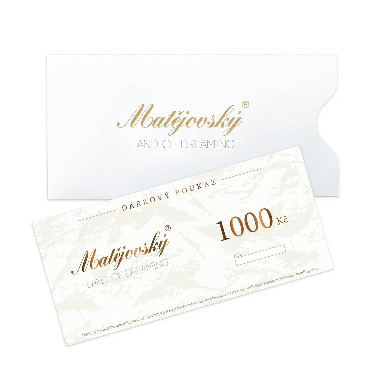 Poukaz zasíláme v tištěné formě v dárkovém obalu a lze ho využít pouze na e-shopu www.matejovsky-povleceni.cz nebo v kamenné prodejně v Semilech. Platnost poukazu je 1 rok od zakoupení.