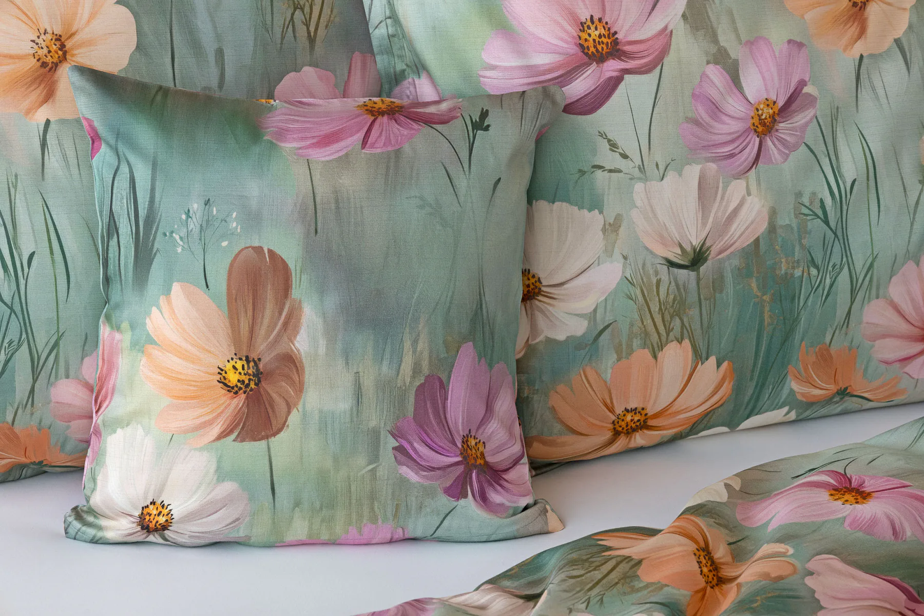 Povlaky jsou šité z metráže, každý kus je proto jiný, resp. zachycuje jinou část vzoru. Přední a zadní strana jednotlivých kusů se rovněž liší s ohledem na zachycenou část vzoru.