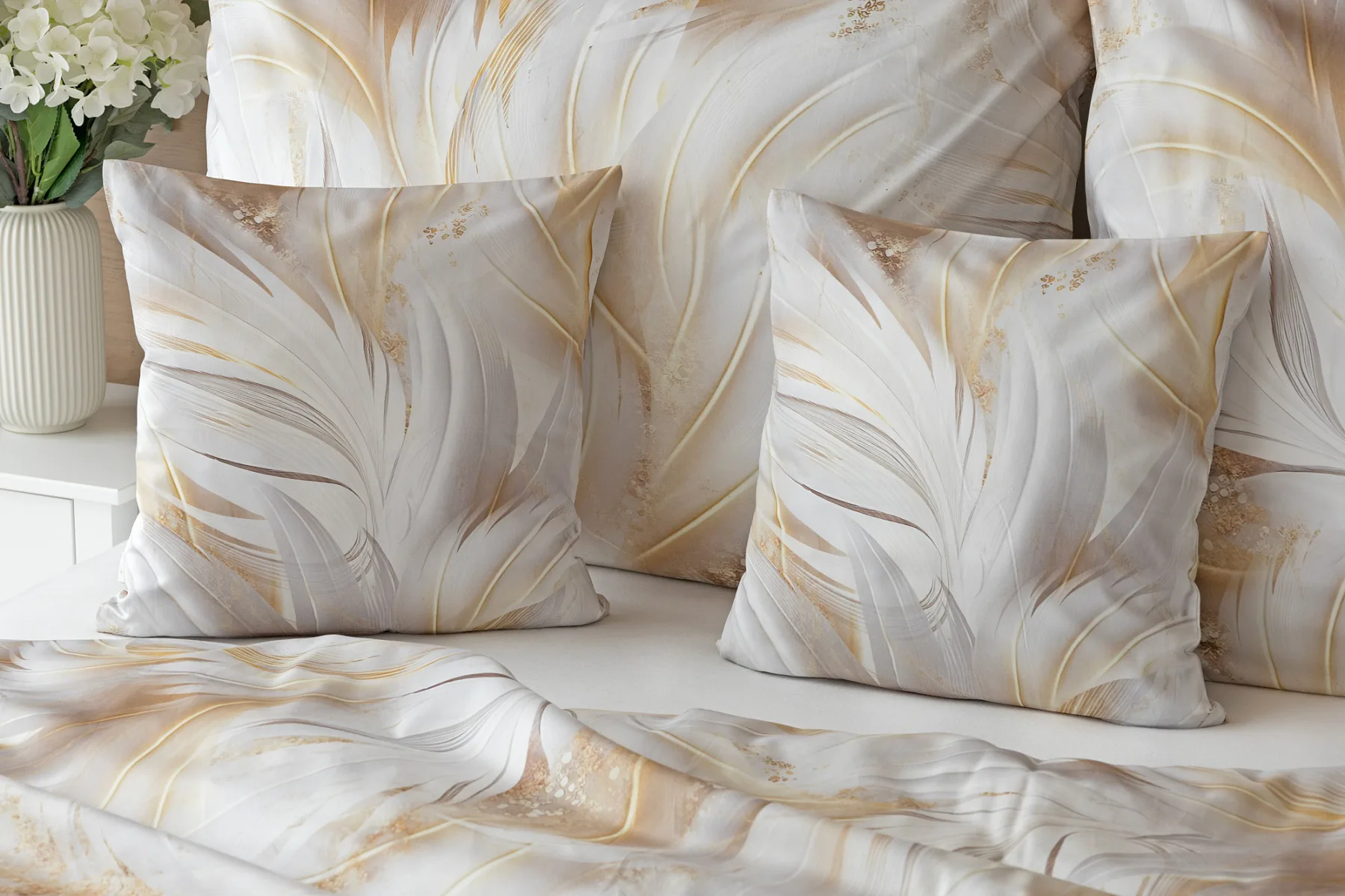 Dokonale vyladěný interiér se neobejde bez stylových polštářků! O nádherné barvy a precizní detaily povlaku Ember vyrobeného z luxusního bavlněného mako saténu se postarala nejmodernější digitální tisková technologie.