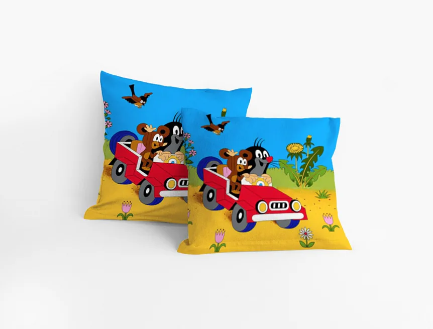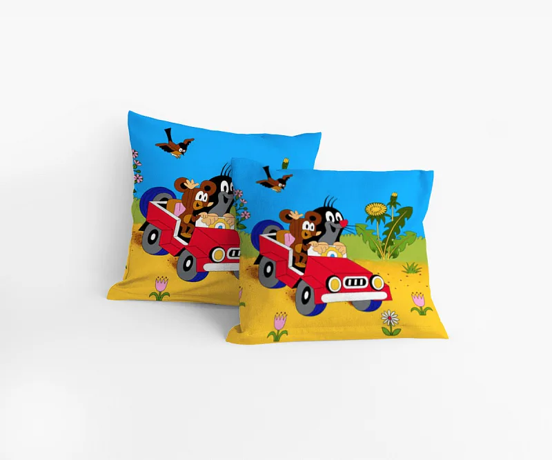 Veselé povláčky s postavičkami Krtka a jeho kamarádů na výletě autíčkem. Povláček je vyrobený ze 100% bavlny a je opatřen zipovým uzávěrem.