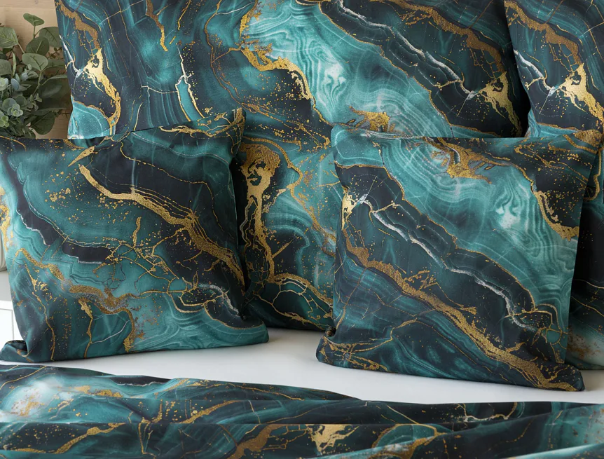Povlaky jsou šité z metráže, každý kus je proto jiný, resp. zachycuje jinou část vzoru. Přední a zadní strana jednotlivých kusů se rovněž liší s ohledem na zachycenou část vzoru.