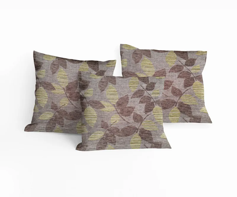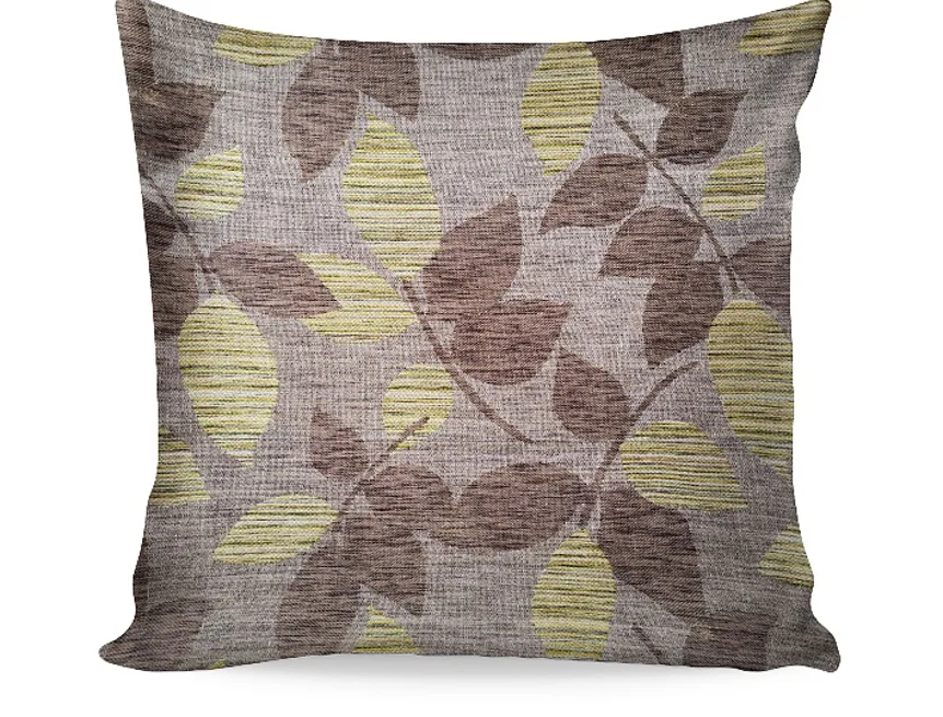 Doplňte svůj interiér elegantními dekoračními povlaky Melissa. Proužkovanou strukturu doplňuje jemný lístečkový vzor, jehož výsledná barevnost se skládá z perfektně sladěných odstínů krémové, šedé, olivové a trávově zelené na hnědém podkladu. Povlak je opatřen komfortním zipovým uzávěrem.
