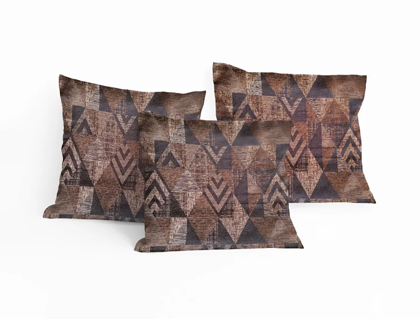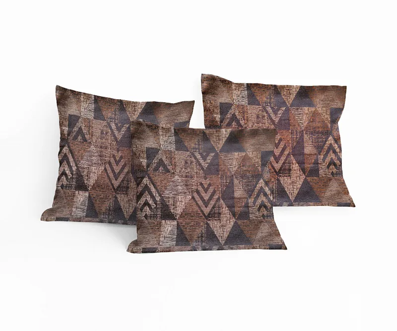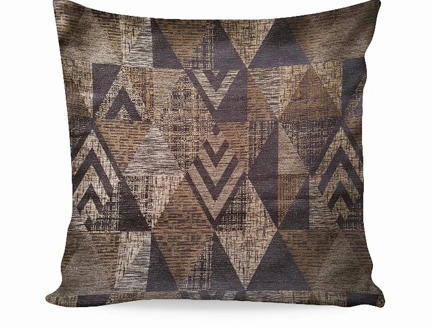 Doplňte svůj interiér elegantními dekoračními povlaky Naomi. Precizně tkanou strukturu látky podtrhuje geometrický trojúhelníkový vzor v perfektně sladěných odstínech temné čokoládově hnědé a černé. Povlak je opatřen komfortním zipovým uzávěrem.