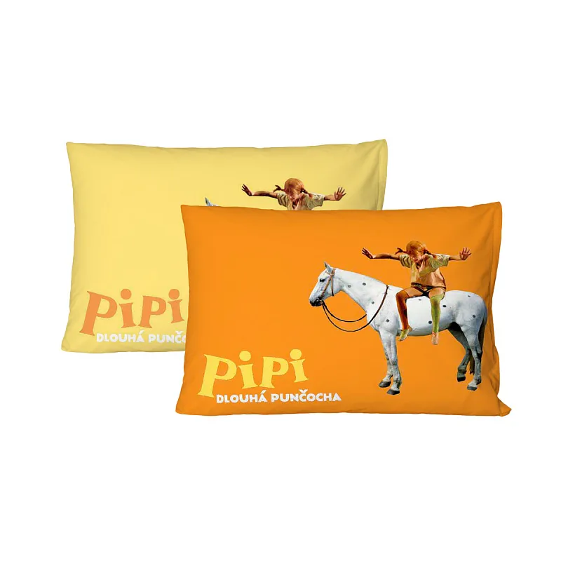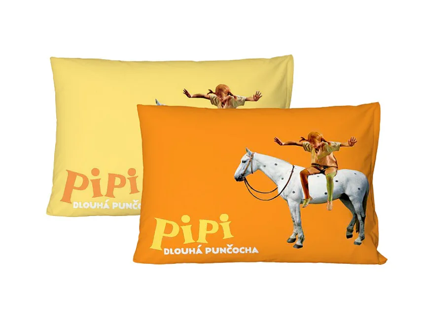 Bavlněný povlak s oblíbenou postavičkou dobrodružné PIPI rozveselí každý dětský pokoj. Motiv na povlaku je z jedné strany na žlutém, z druhé strany na oranžovém podkladu (viz fotografie). Povlak je opatřen praktickým zipovým uzávěrem.