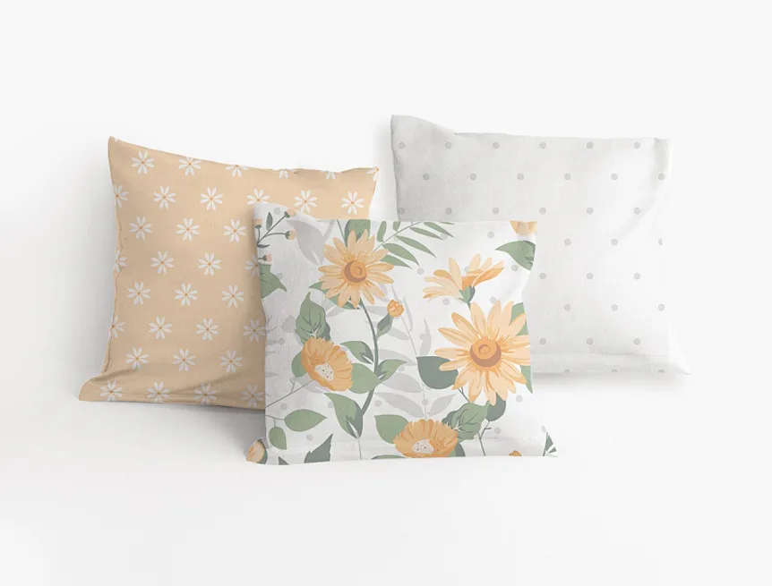 Povlaky jsou šité z metráže, každý kus je proto jiný, resp. zachycuje jinou část vzoru. Přední a zadní strana jednotlivých kusů se rovněž liší s ohledem na zachycenou část vzoru.
