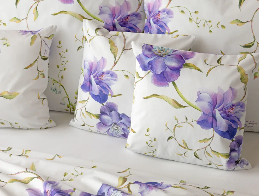 Povlaky jsou šité z metráže, každý kus je proto jiný, resp. zachycuje jinou část vzoru. Přední a zadní strana jednotlivých kusů se rovněž liší s ohledem na zachycenou část vzoru.