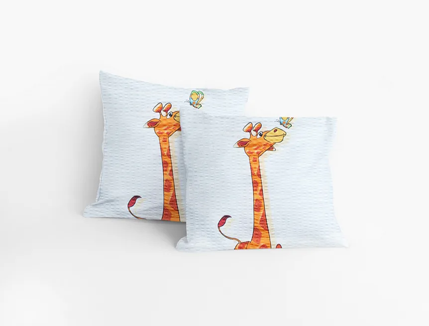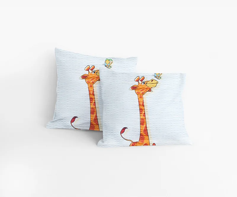 Jemný krepový polštářek s veselou žirafkou si oblíbí každé dítě. Kreslená postavička bude milým kamarádem při usínání. Povláček je opatřen knoflíkovým uzávěrem.