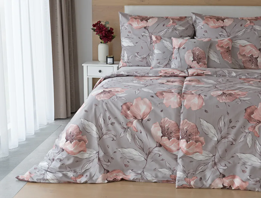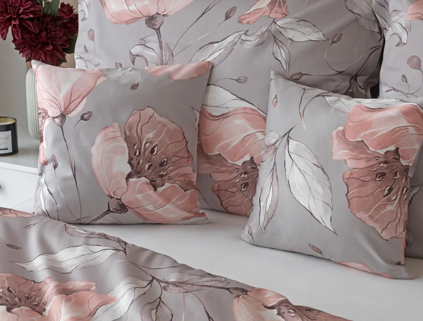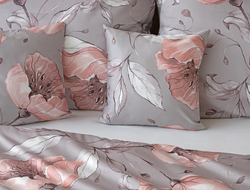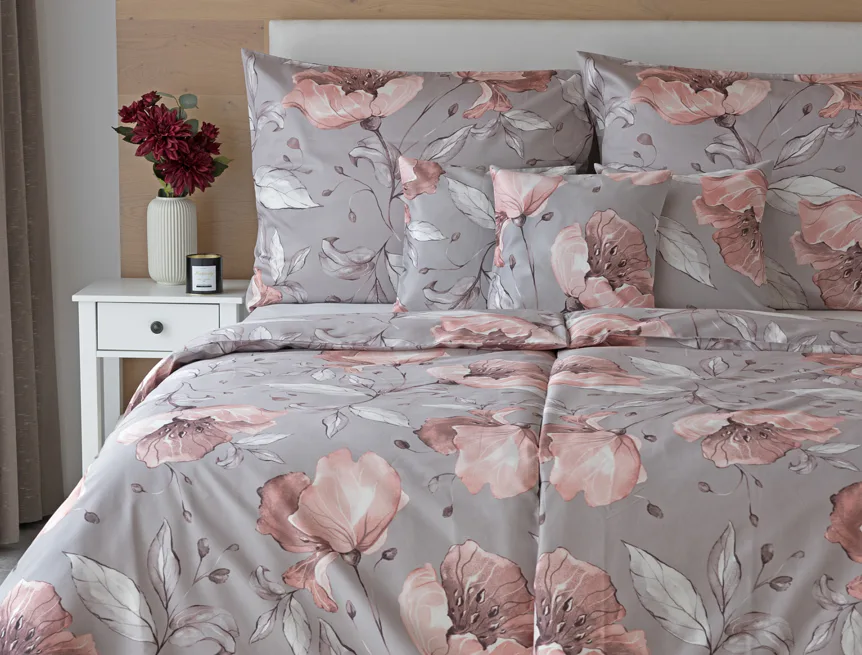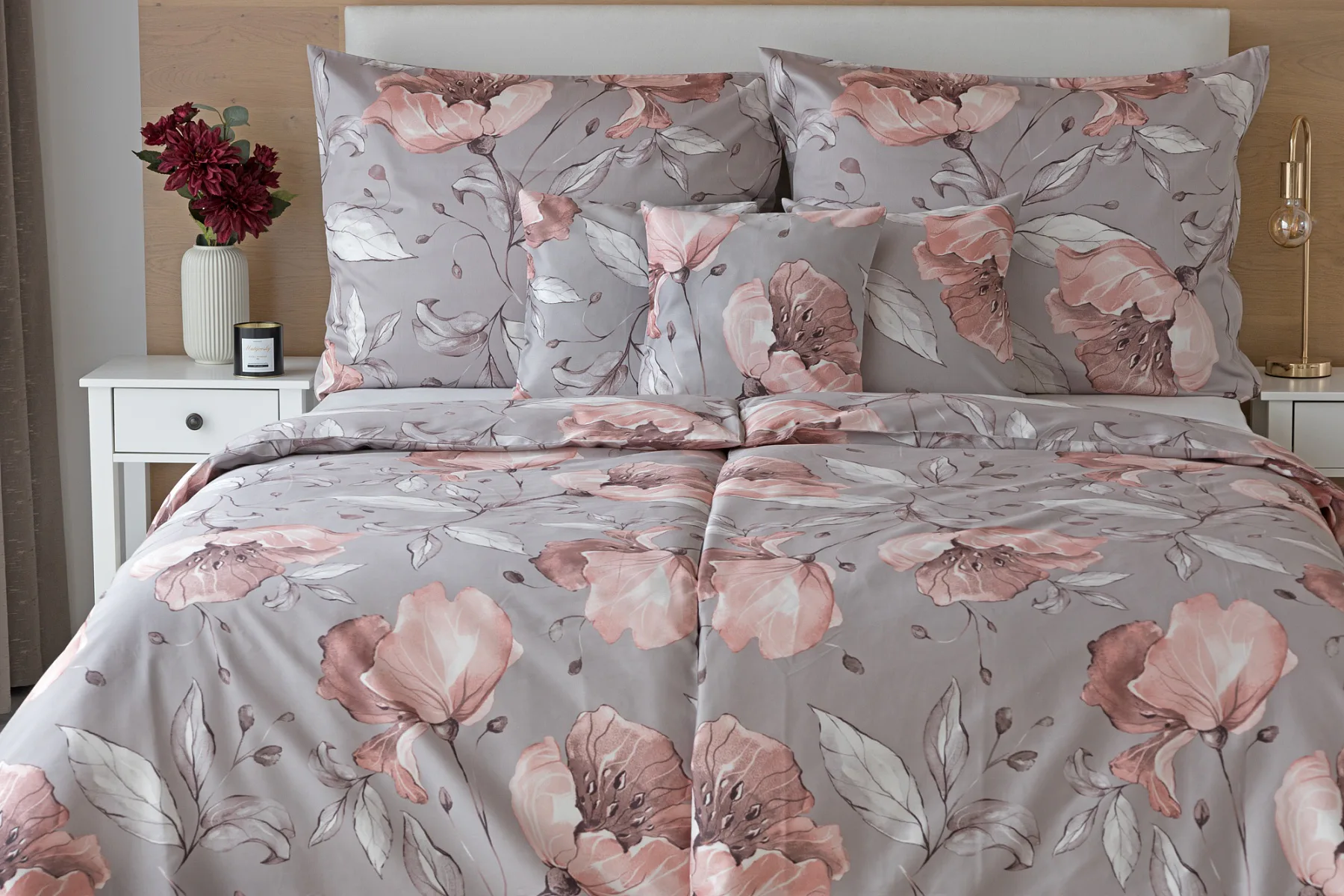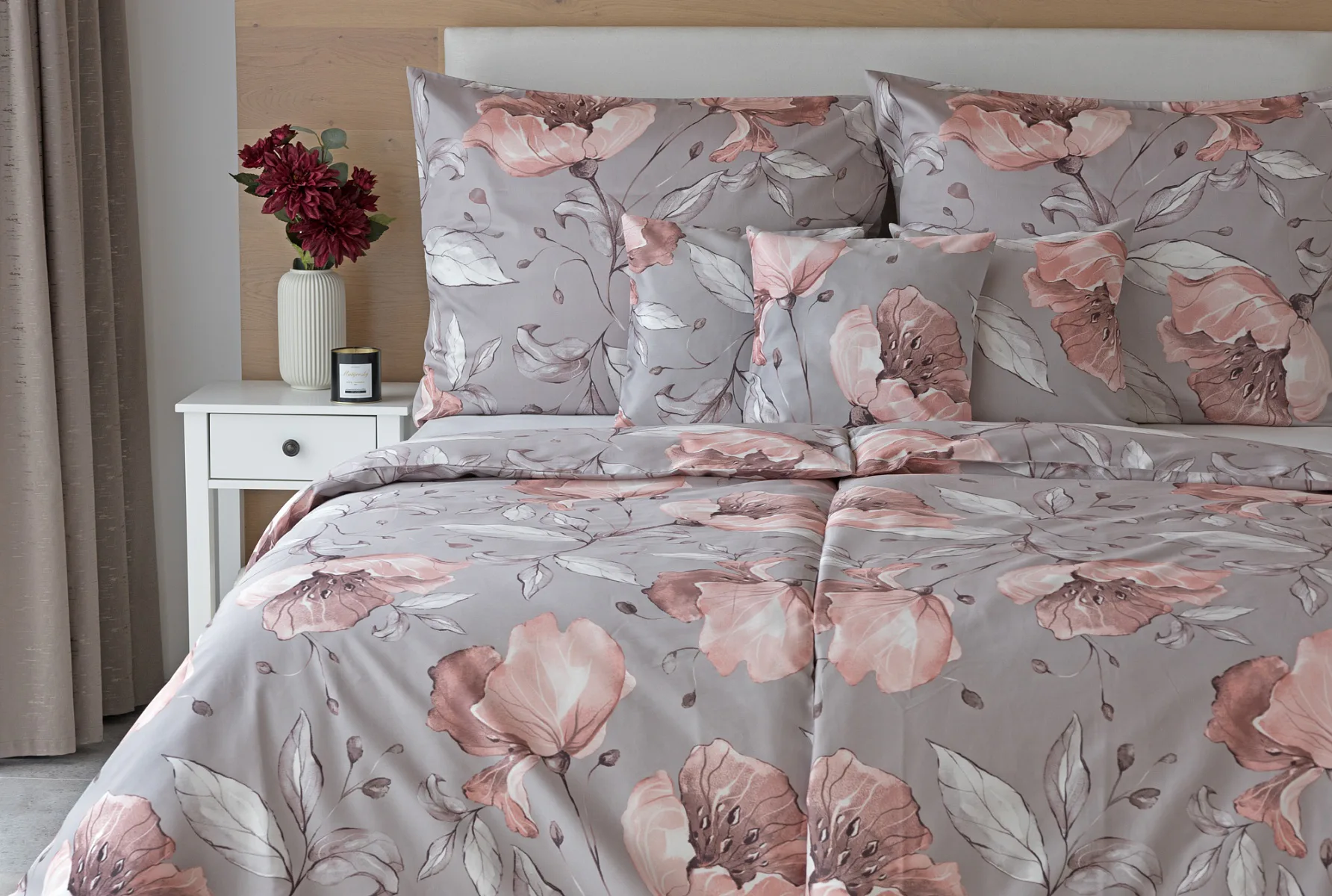 Nechte se okouzlit nadčasovou elegancí ložního povlečení Amabel. Jemný florální vzor v paletě pudrových a růžových tónů je v dokonalé harmonii s pastelově šedým podkladem. Jemné šedobílé prvky podtrhují plastičnost okvětních lístků.