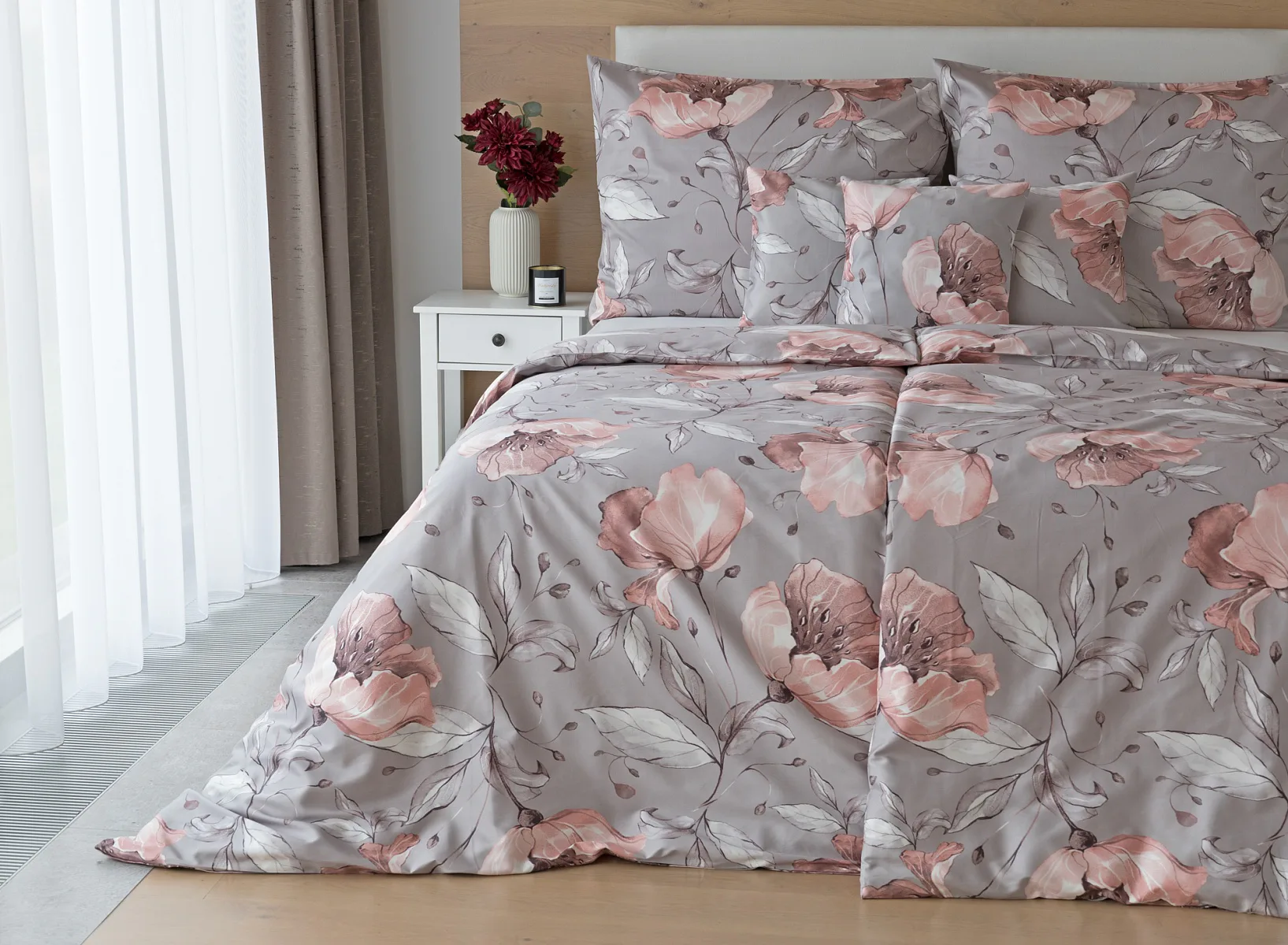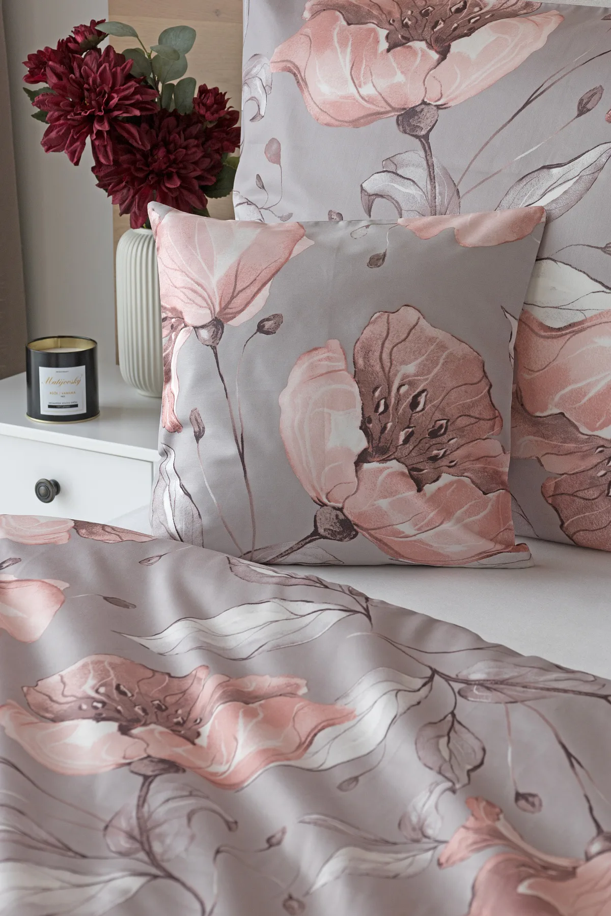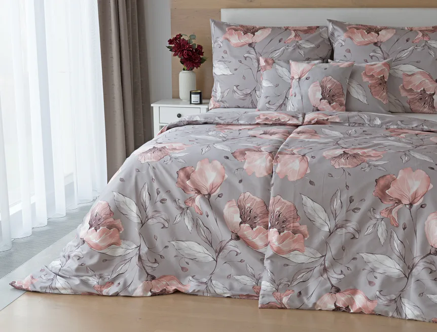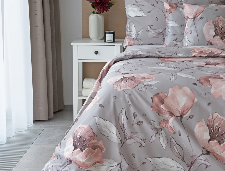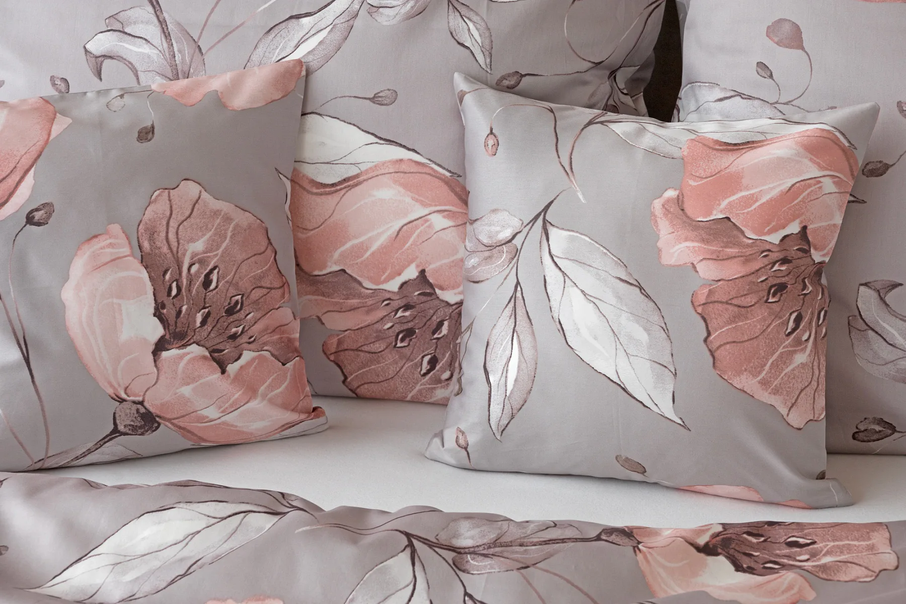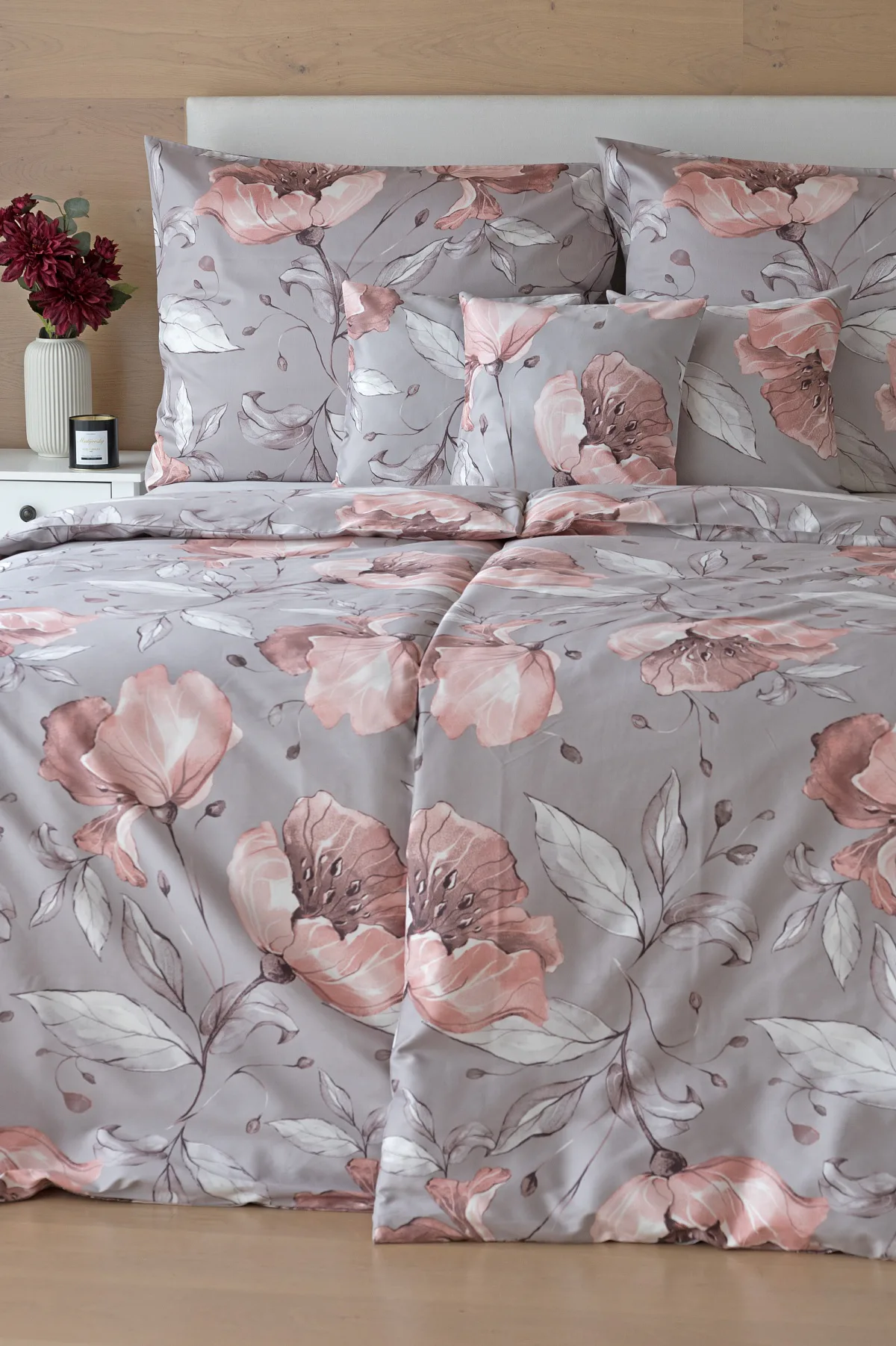 Nechte se okouzlit nadčasovou elegancí ložního povlečení Amabel. Jemný florální vzor v paletě pudrových a růžových tónů je v dokonalé harmonii s pastelově šedým podkladem. Jemné šedobílé prvky podtrhují plastičnost okvětních lístků.