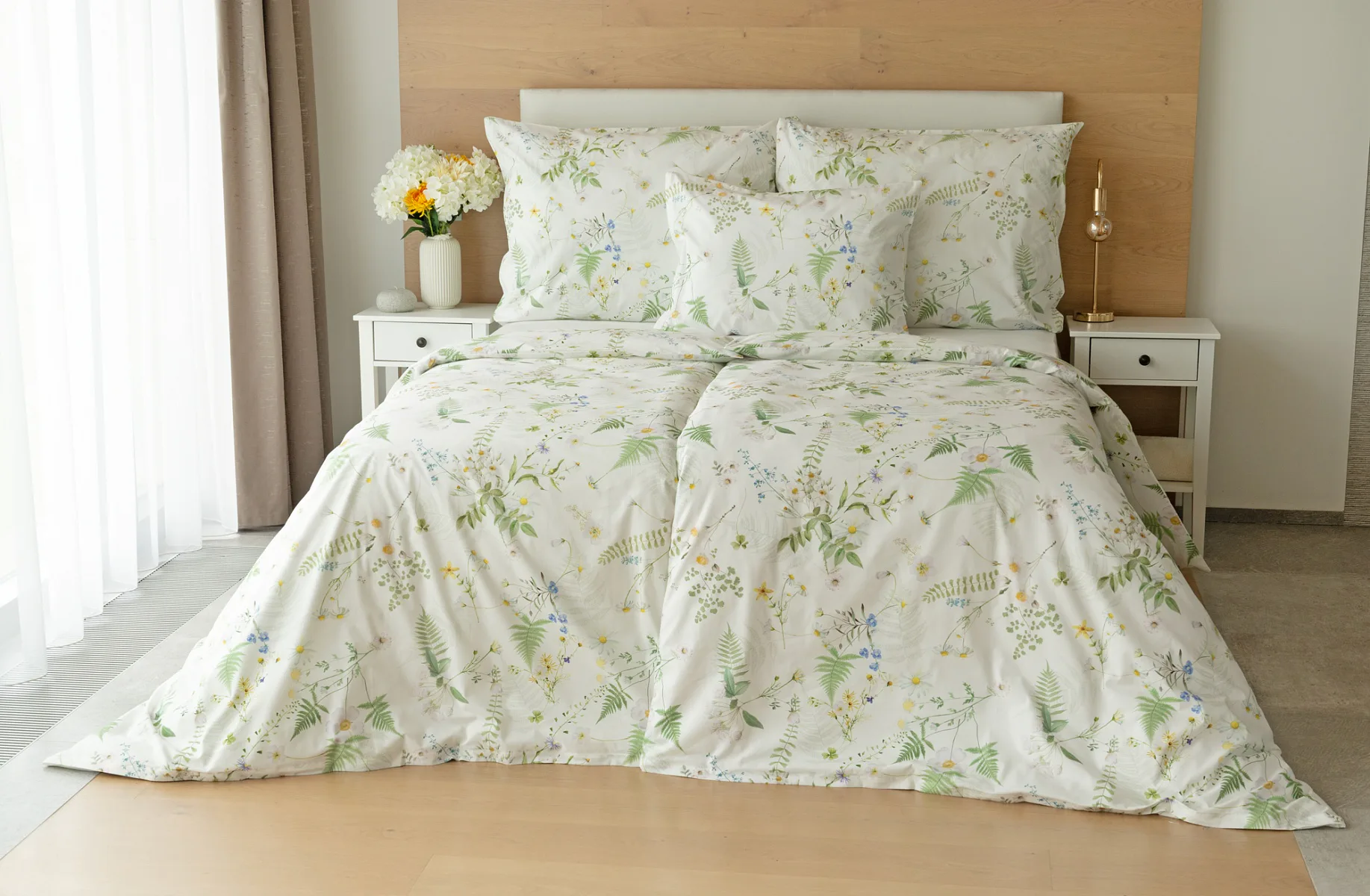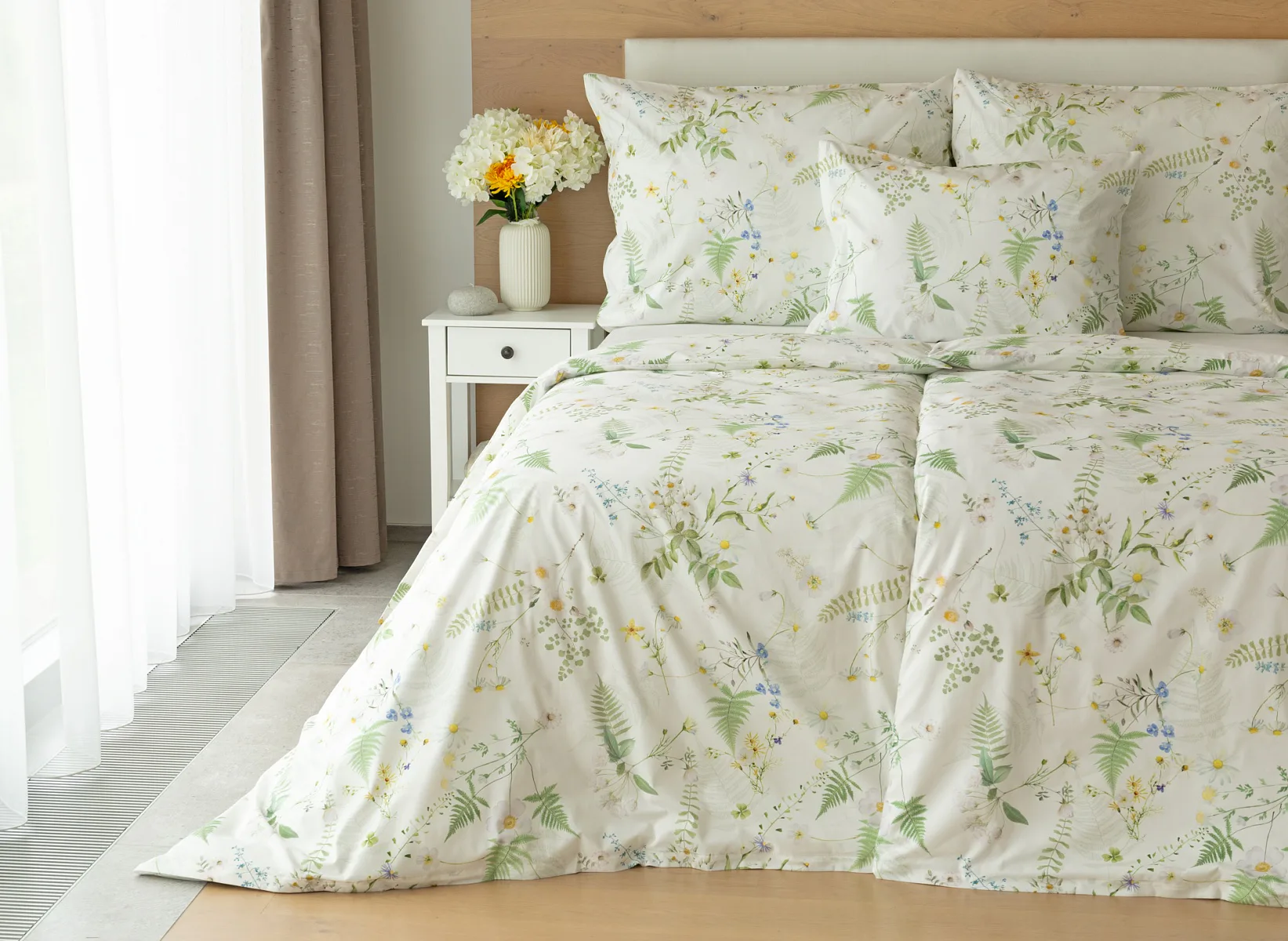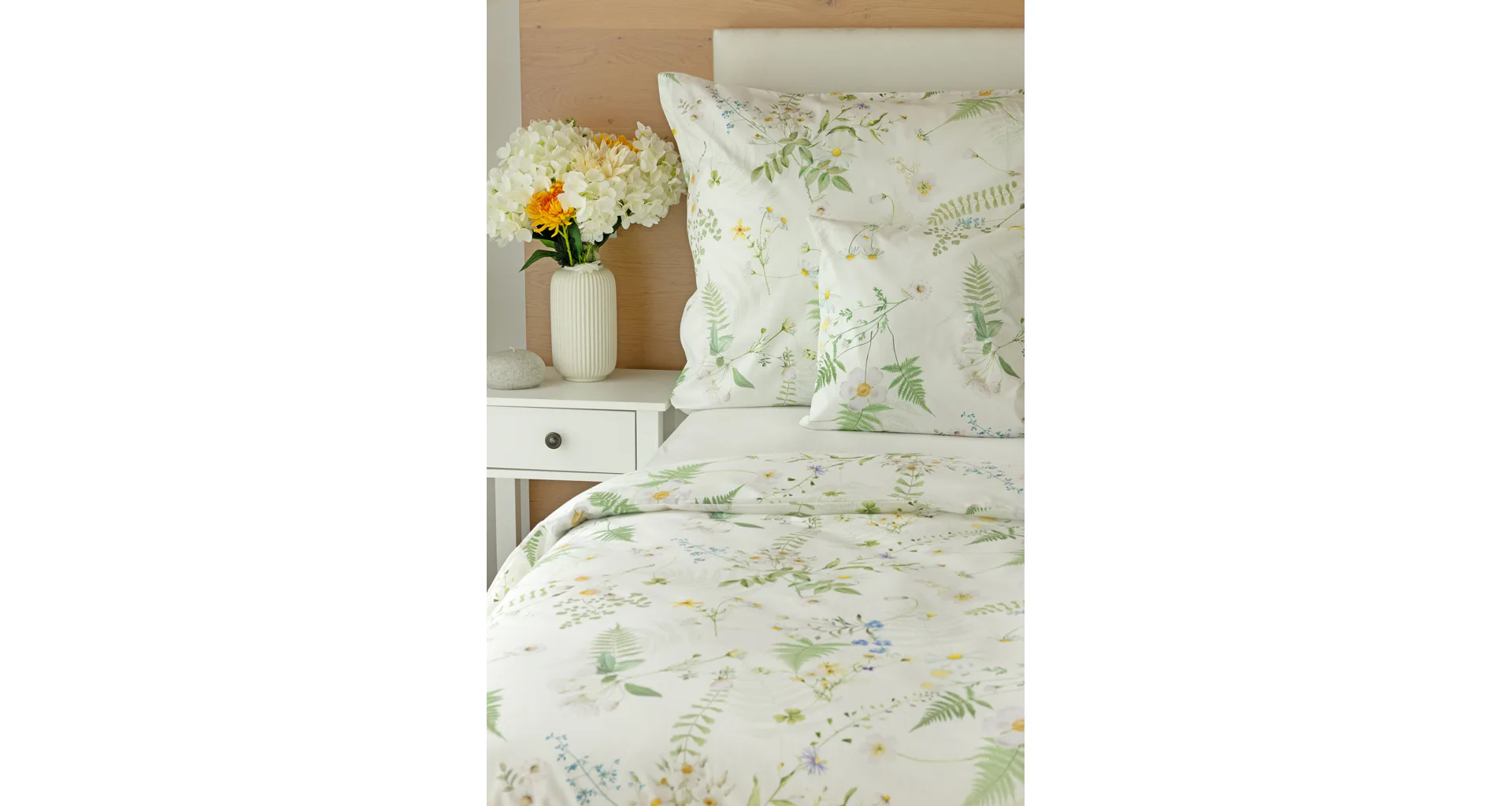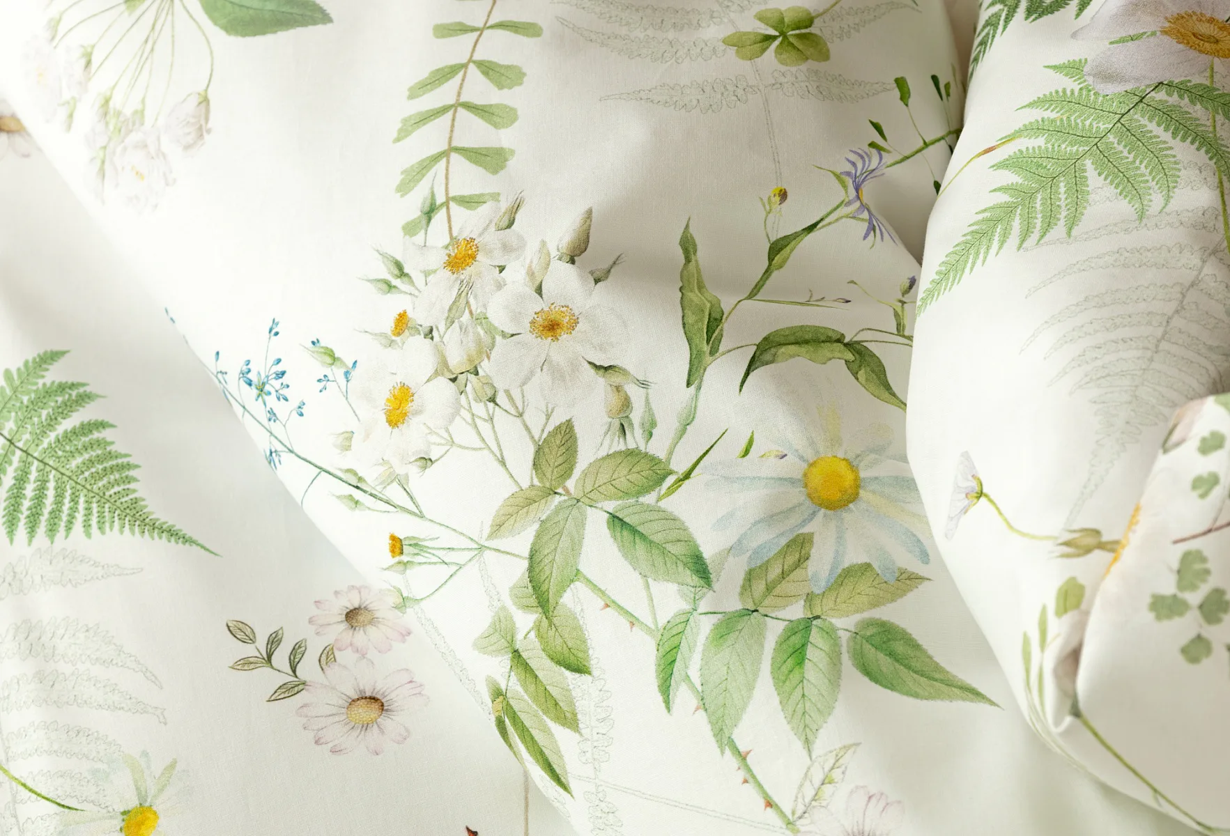 Něžný květinový motiv ložního povlečení Aria se zaslouží o vaši pozornost. Jemné luční kvítí různě propletené vyniká na bílém podkladu a působí nesmírně čistým dojmem. Dokonalá jarní svěžest. Díky nejmodernější digitální tiskové technologii vyniká každý kvítek v precizním detailu.