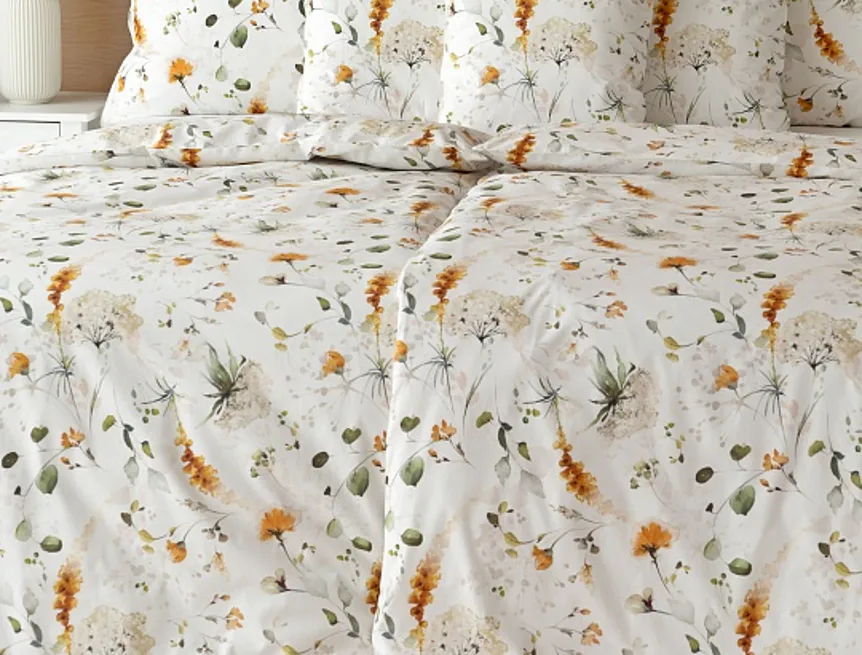 Povlak na polštář i na přikrývku tvoří z obou stran stejný florální motiv, povlečení je opatřeno komfortním zipovým uzávěrem.
