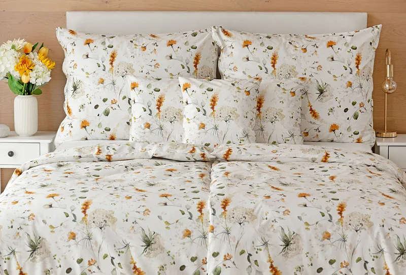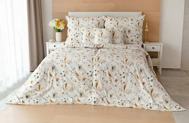 S něžným květinovým povlečením Arleen bude vaše ložnice dýchat jarní svěžestí v každé roční době. Jemný florální vzor v paletě medově žlutých a mátově zelených tónů vyniká na krémově bílém podkladu....