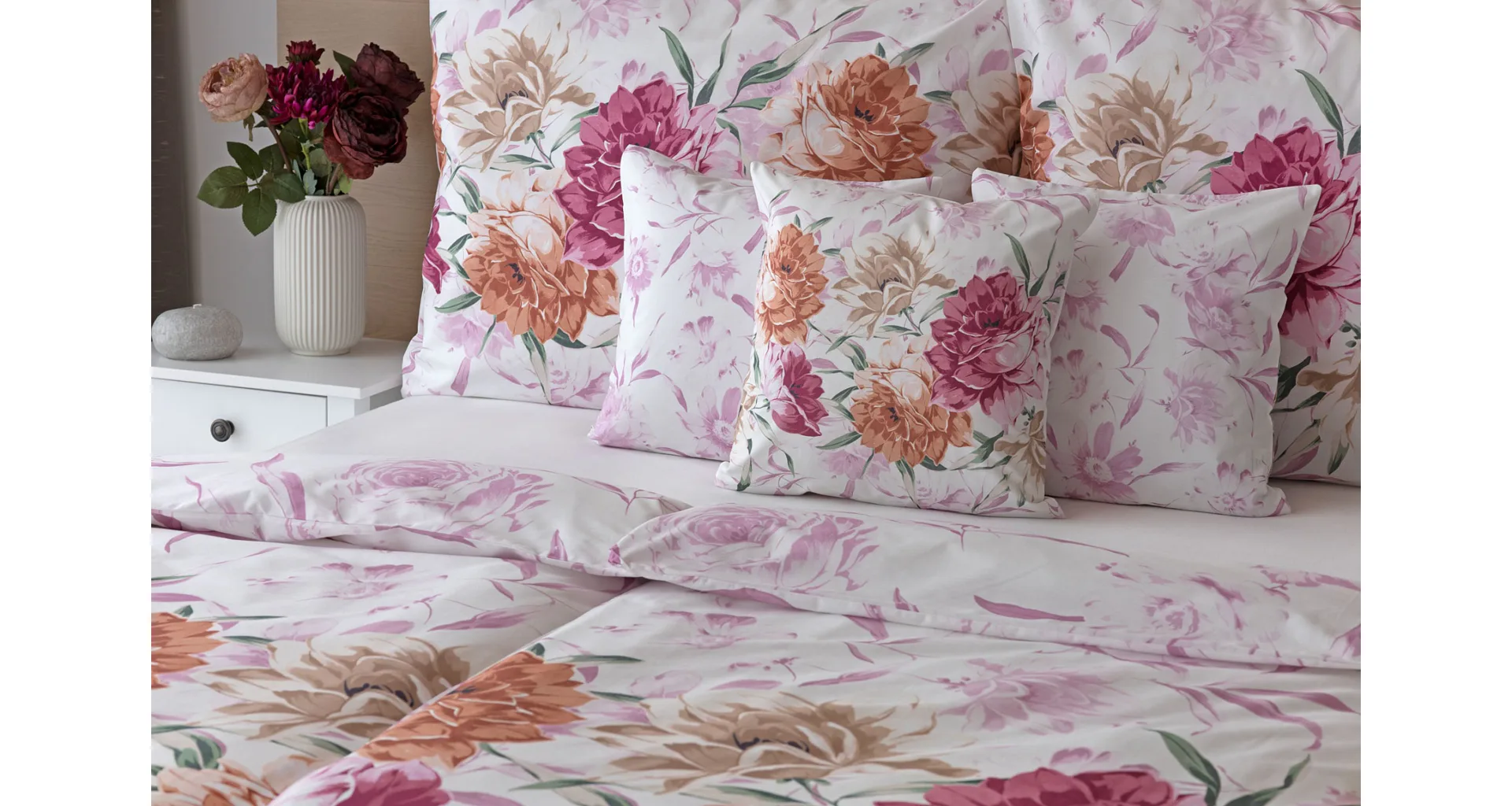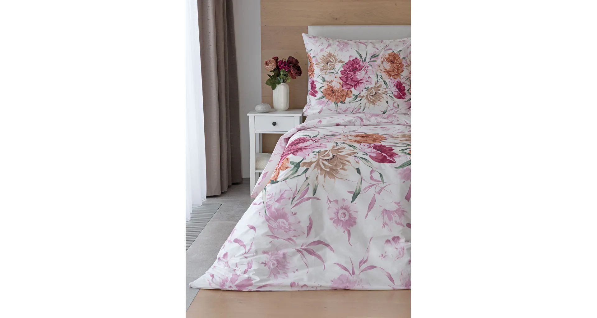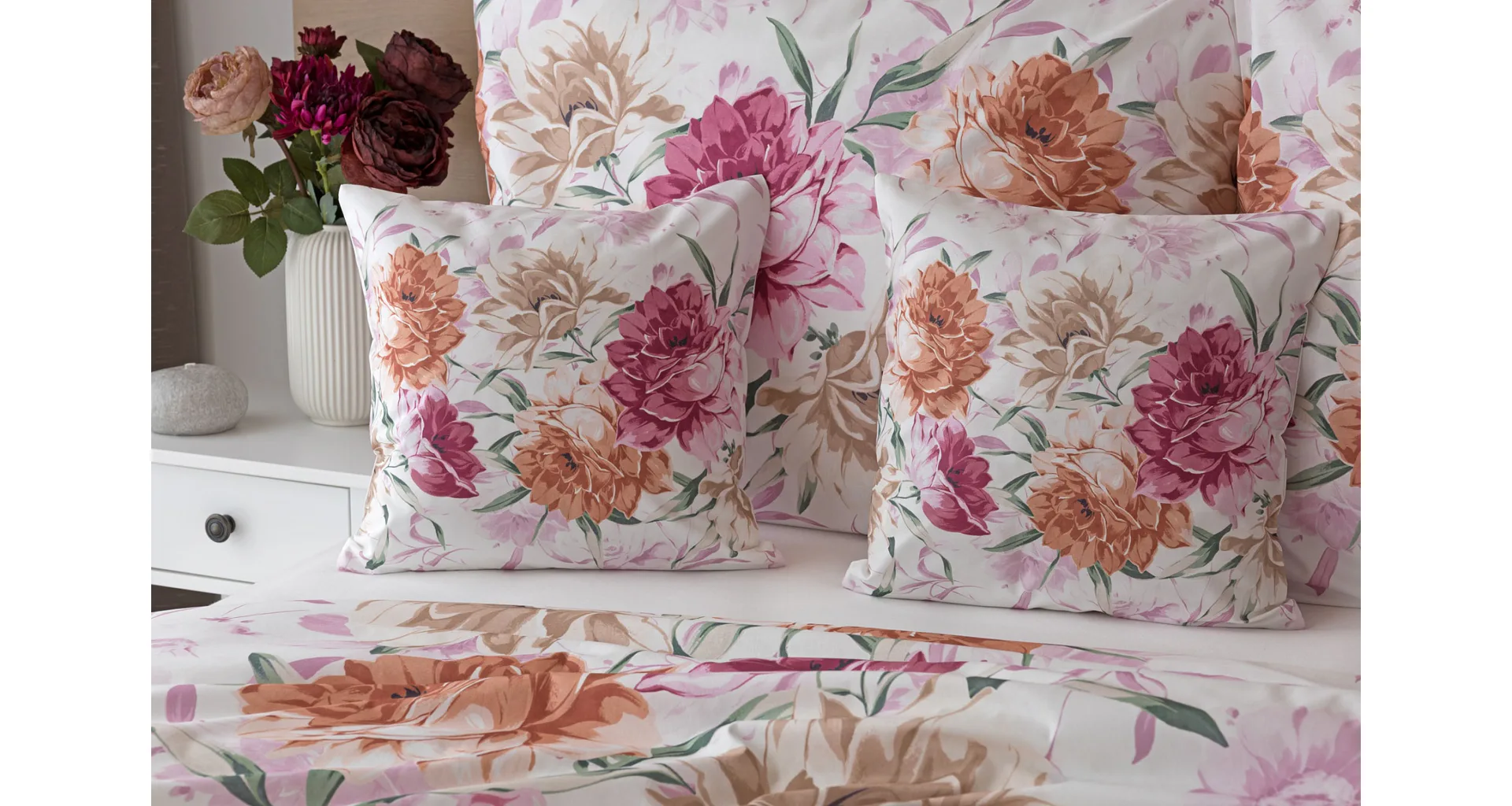 Dopřejte své ložnici hřejivou atmosféru s bavlněným povlečením Astrid, které vás nadchne variabilitou, s níž si užijete hravé stlaní. Povlak na přikrývku i na polštář zachycuje květinový motiv z každé strany jinak, abyste mohli být při stlaní kreativní!