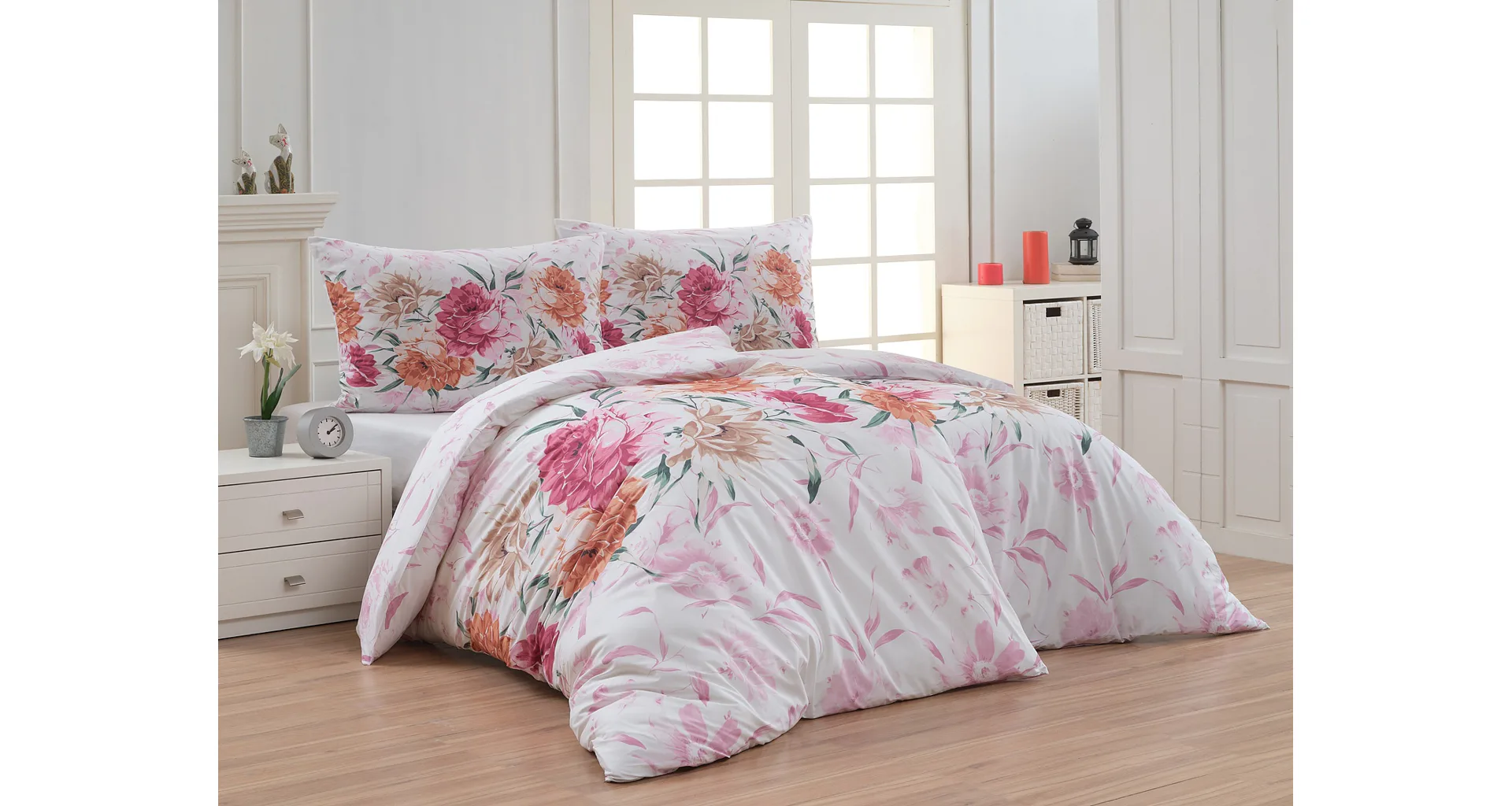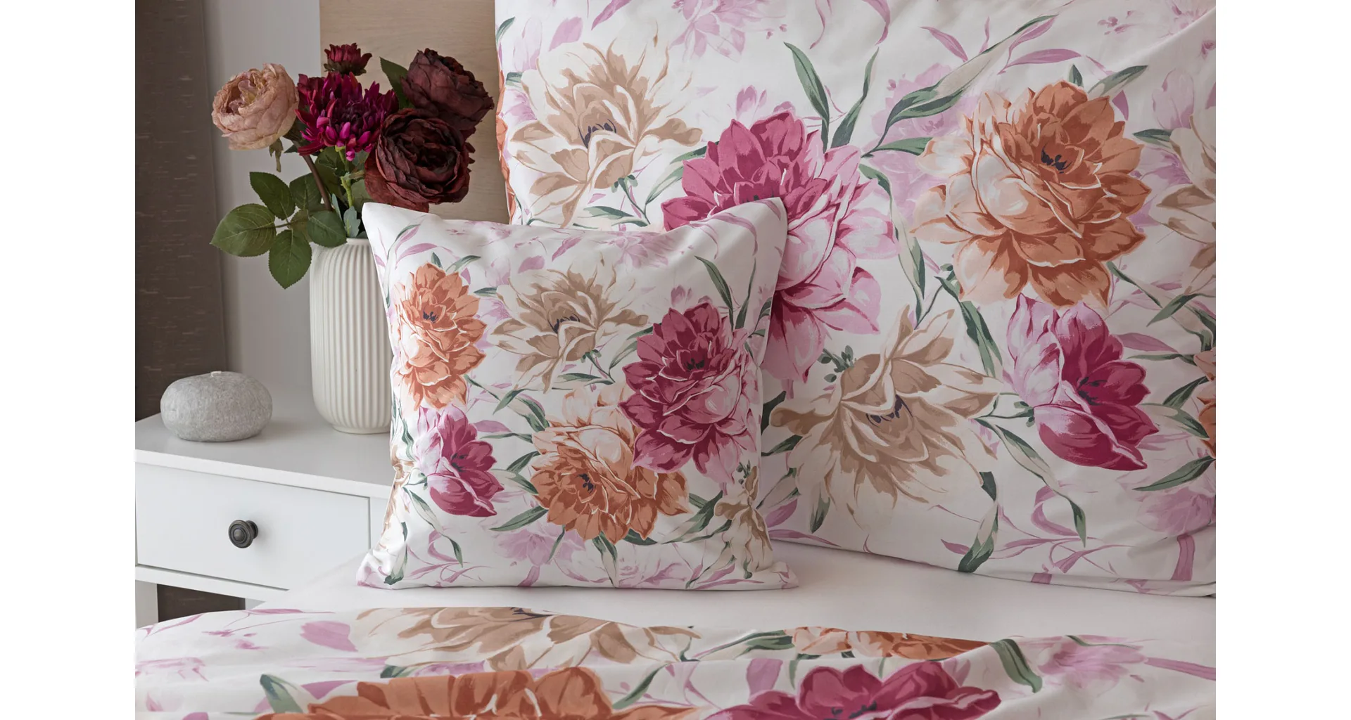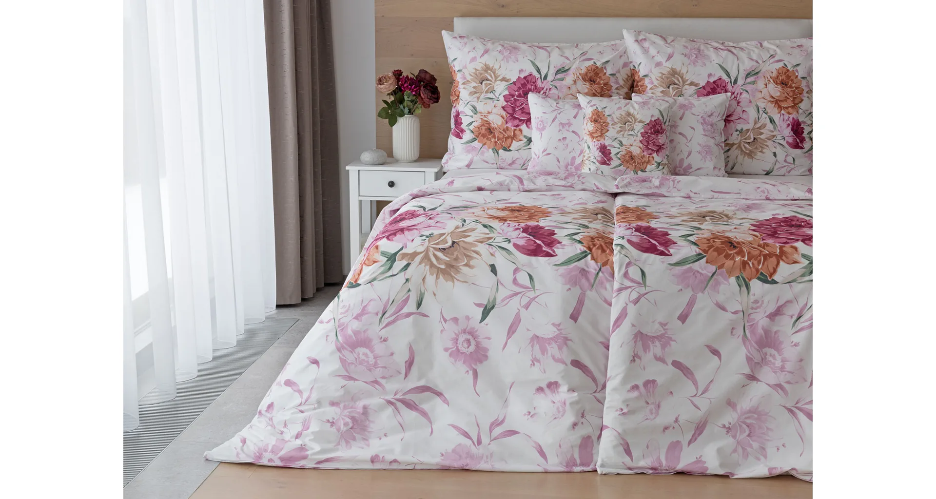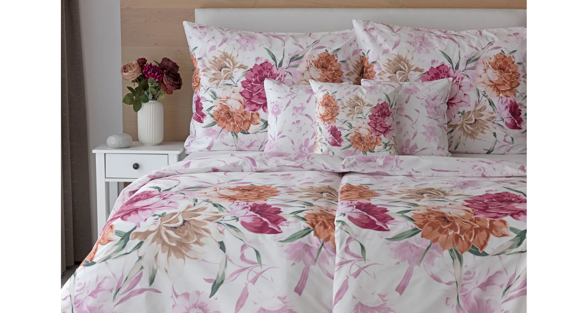 Dopřejte své ložnici hřejivou atmosféru s bavlněným povlečením Astrid, které vás nadchne variabilitou, s níž si užijete hravé stlaní. Povlak na přikrývku i na polštář zachycuje květinový motiv z každé strany jinak, abyste mohli být při stlaní kreativní!