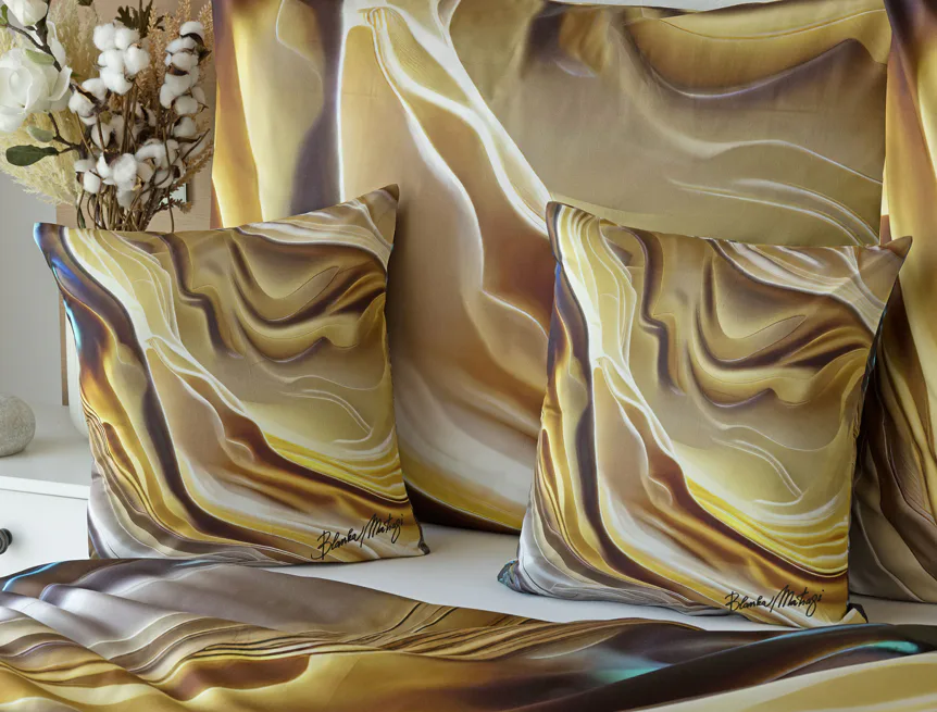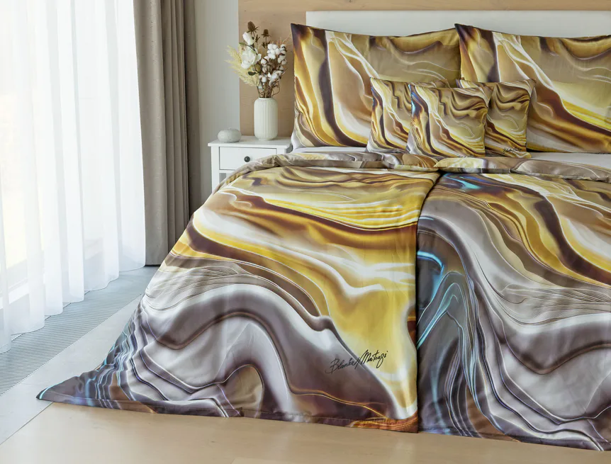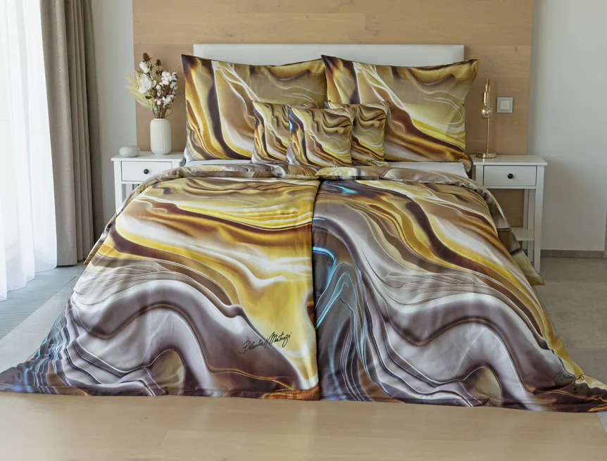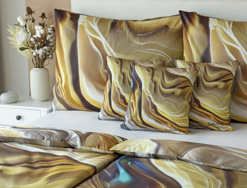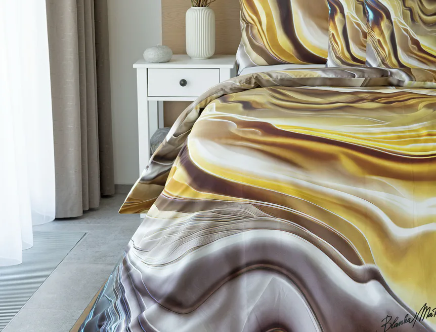Tento autorský digitálně zpracovaný motiv v sobě snoubí hřejivé odstíny zlaté, béžové a hnědé barvy. Nejmodernější digitální tisk zajišťuje věrný detail přesně dle autorčina záměru, motiv je z obou stran povlečení stejný.