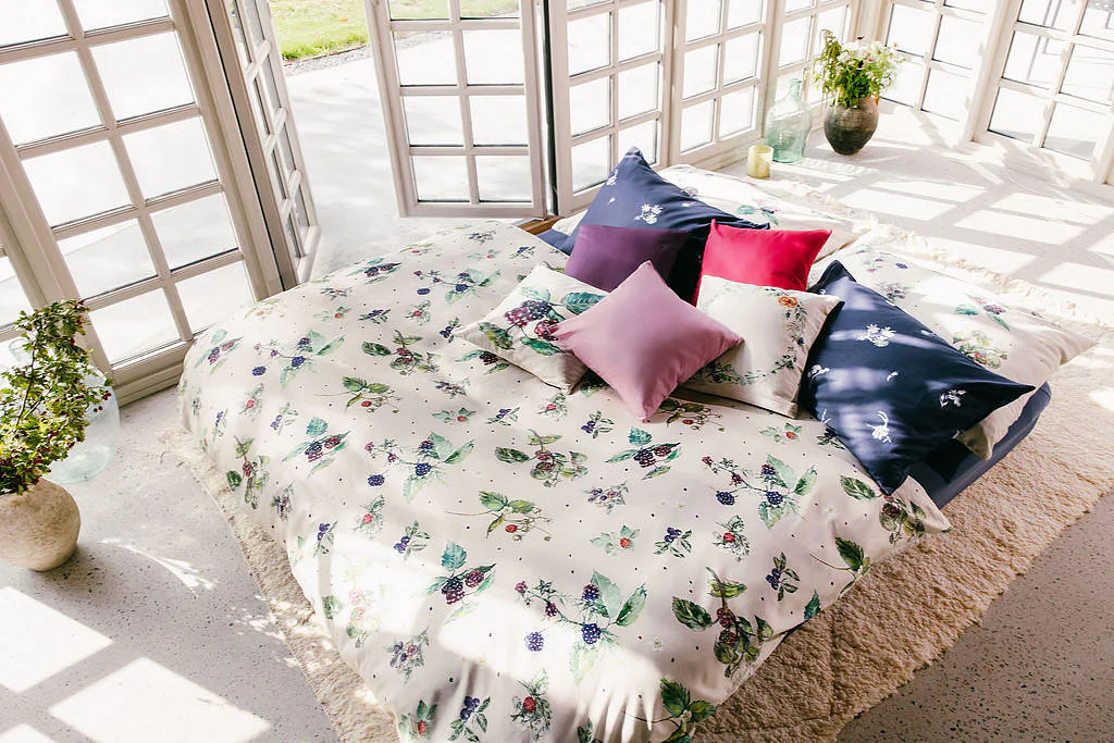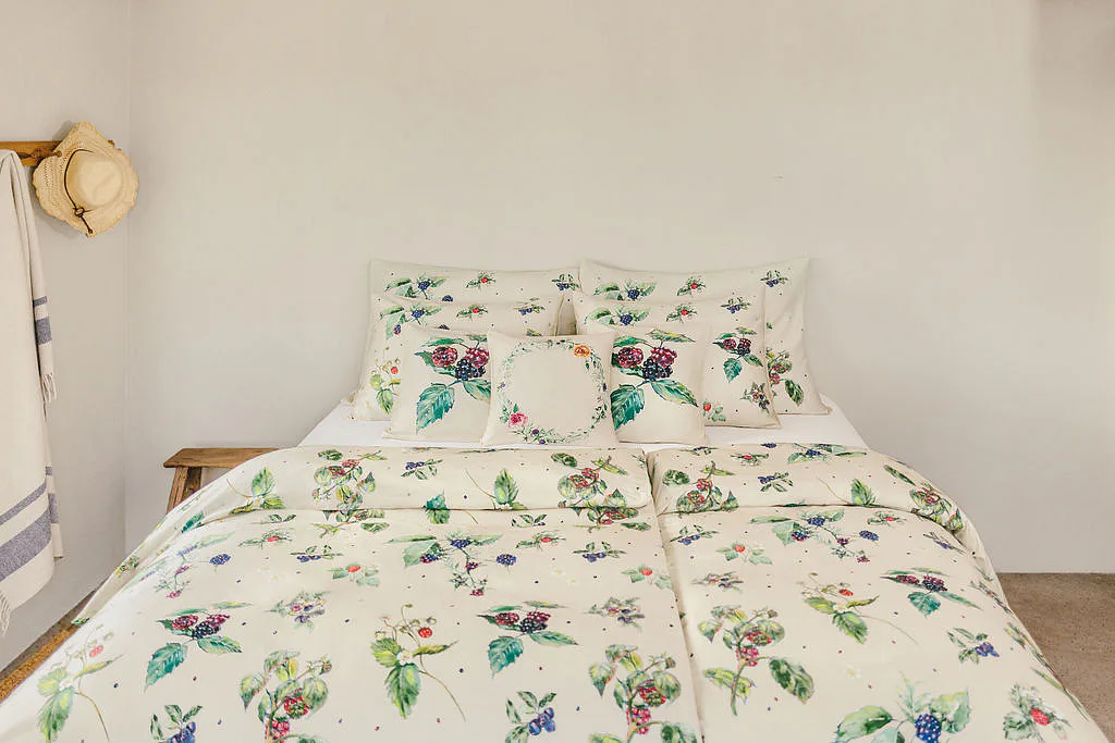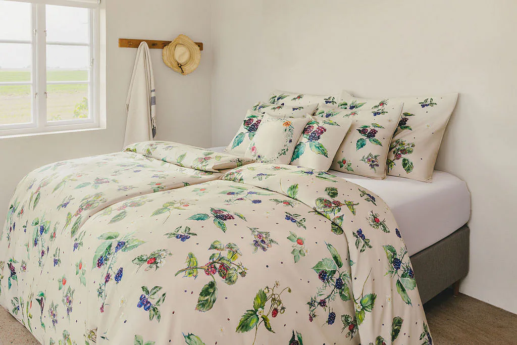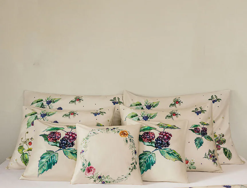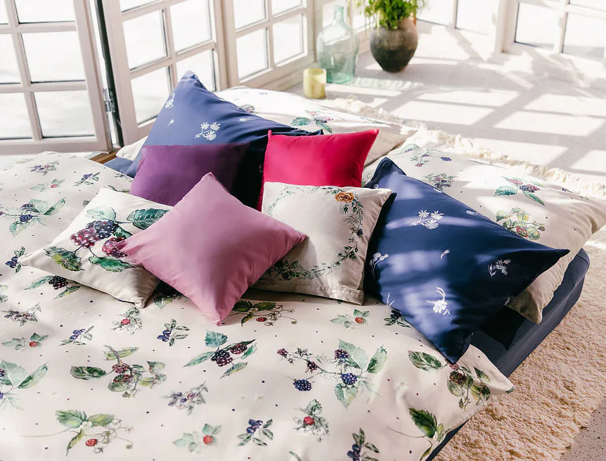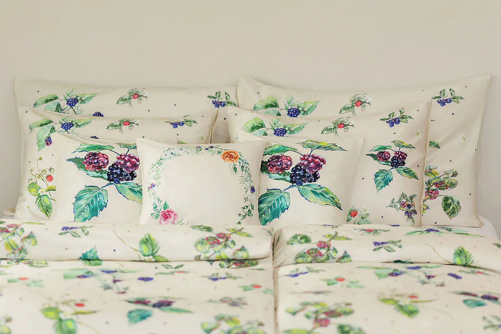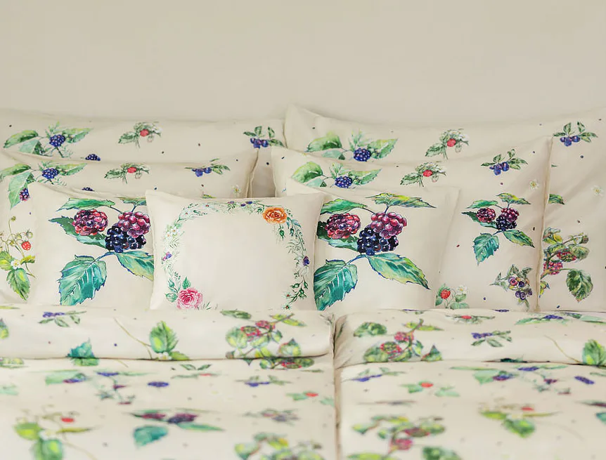 Hřejivý příběh léta i podzimní úkryt. „Útulnost hlubokých barev lesních plodů a listů“ podtrhuje béžový podklad s lehce zeleným podtónem – soudobě chic, přesto domácké. Název vychází z „berries“ a hravost barevných kuliček se krásně pojí se zemitými tóny. „Skoro jako bych si měla do postele zalézt až do jara,“ říká Zuzana – přesně tak působí: sametově, měkce, bezpečně.