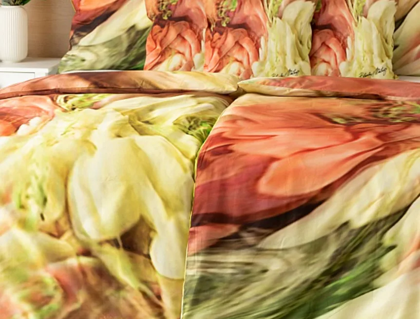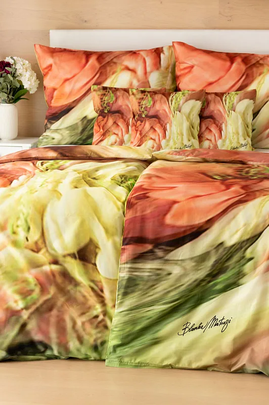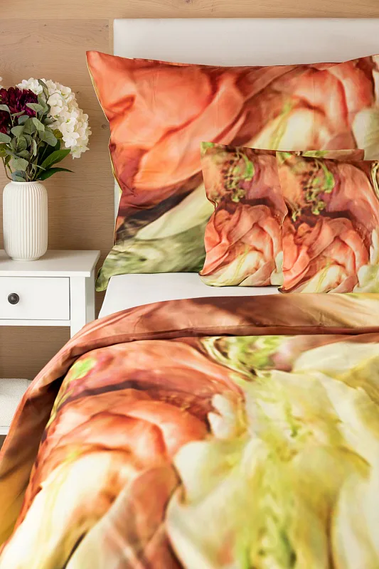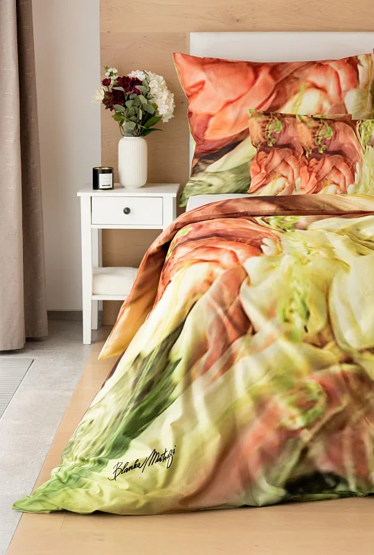 Užijte si dokonalé spojení červeno-růžových tónů s odstíny zelené v abstraktním květinovém vzoru povlečení Blooming. Zářivé barvy a propracované detaily činí z luxusního povlečení osobité umělecké dílo.