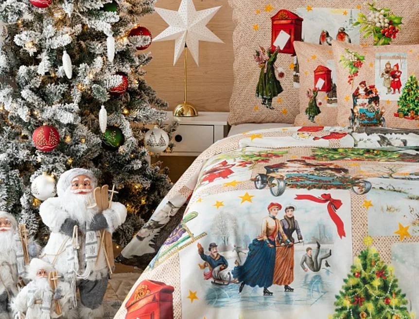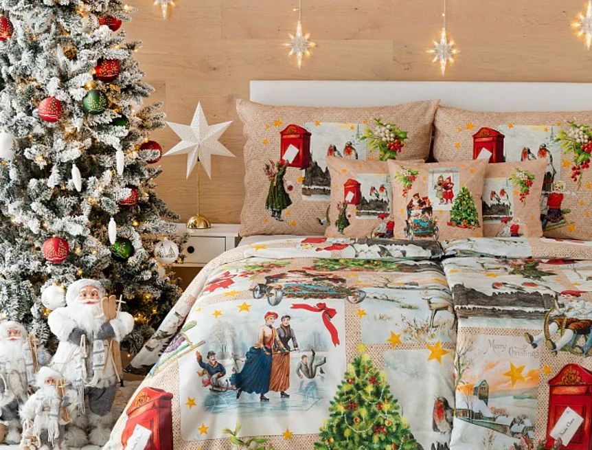 Veselé bavlněné povlečení Christmas Vintage je tím pravým poslem Vánoc. Snad všechny tradiční motivy, které se vám vybaví v souvislosti s těmito kouzelnými svátky, najdete v důmyslně sestavené koláži. Pokud máte smysl pro detail a zalíbení ve vánočních dekoracích, pořiďte si tento sváteční klenot do ložnice i do dětského pokojíčku.