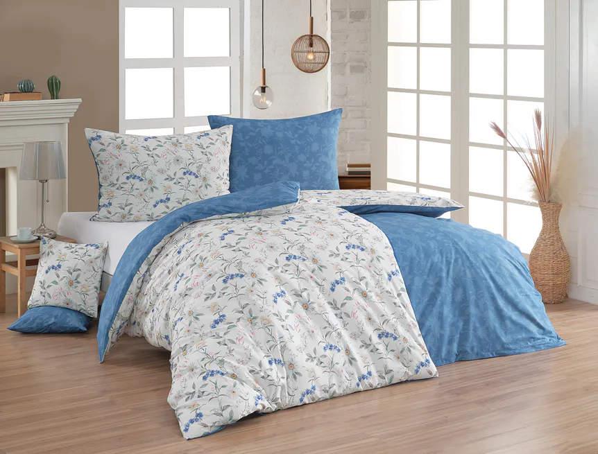 Vychutnejte si květinovou symfonii s bavlněným ložním povlečením Daisy, které vdechne vaší ložnici příjemnou atmosféru. Decentní květinový vzor na vrchní straně povlečení se snoubí s barevně sladěným modrým podkladem na spodní straně, na kterém se květinový motiv odráží jen ve světlém kontrastu. Díky tomuto oblíbenému oboustrannému provedení si užijete hravé stlaní!