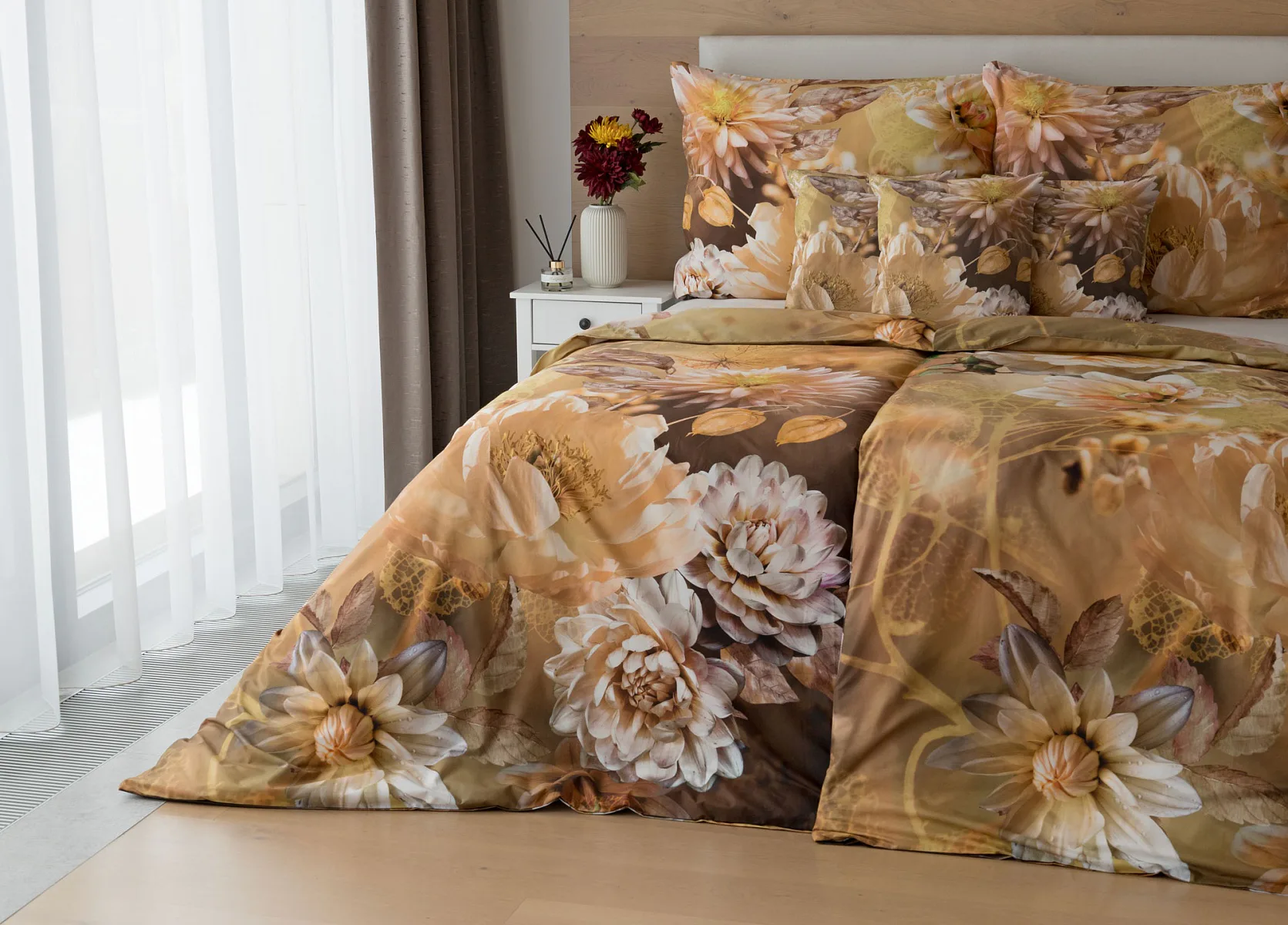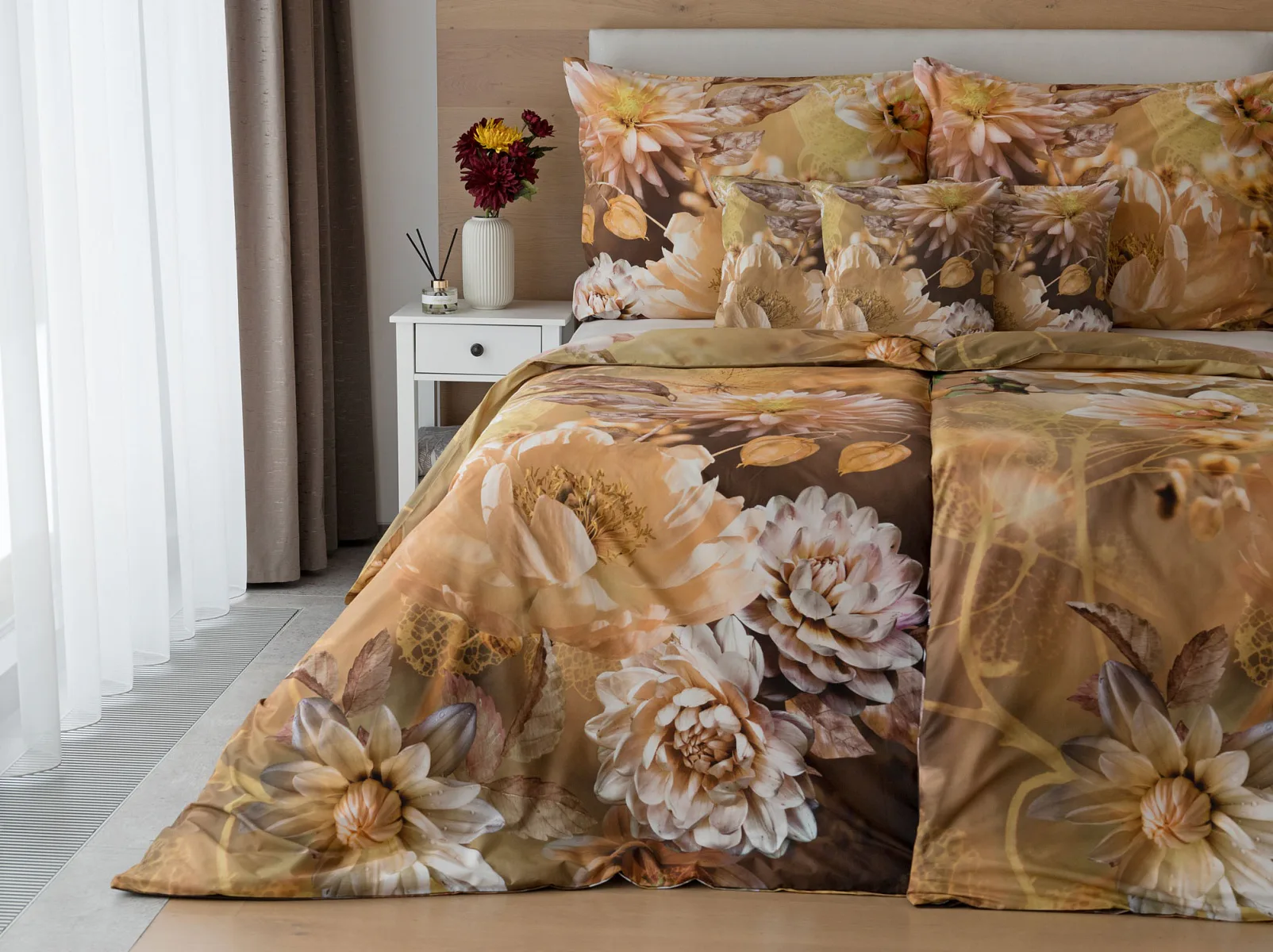 Svěží vůni květů neucítíte, ale všemi ostatními smysly můžete vnímat kouzlo přírody s ložním povlečením Daniela. Impozantní květinový vzor upoutá zrak, vyvolá chuť se zachumlat a poslechnout si ticho noci. Dotek hebké výběrové bavlny se postará o váš spokojený spánek.