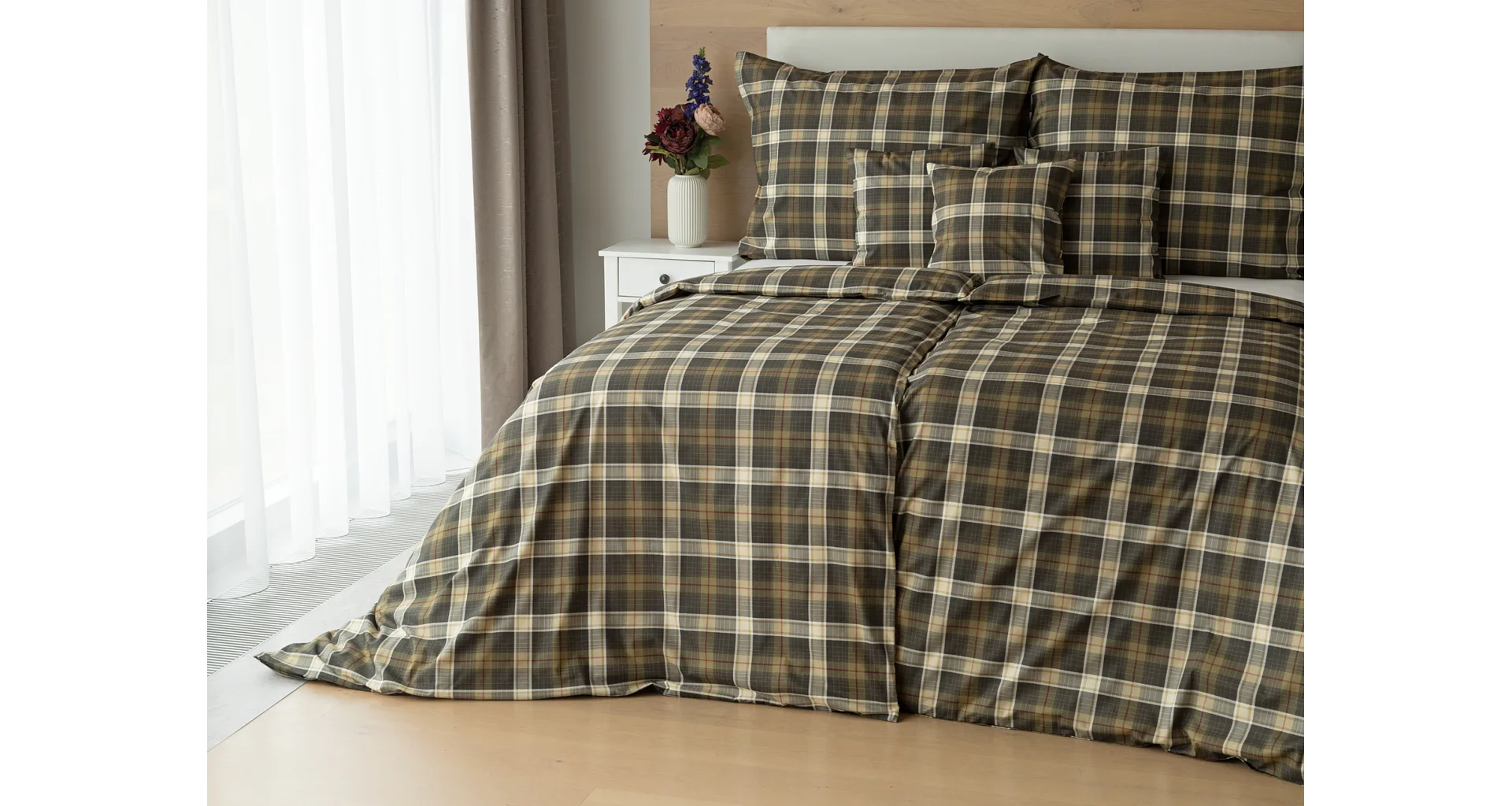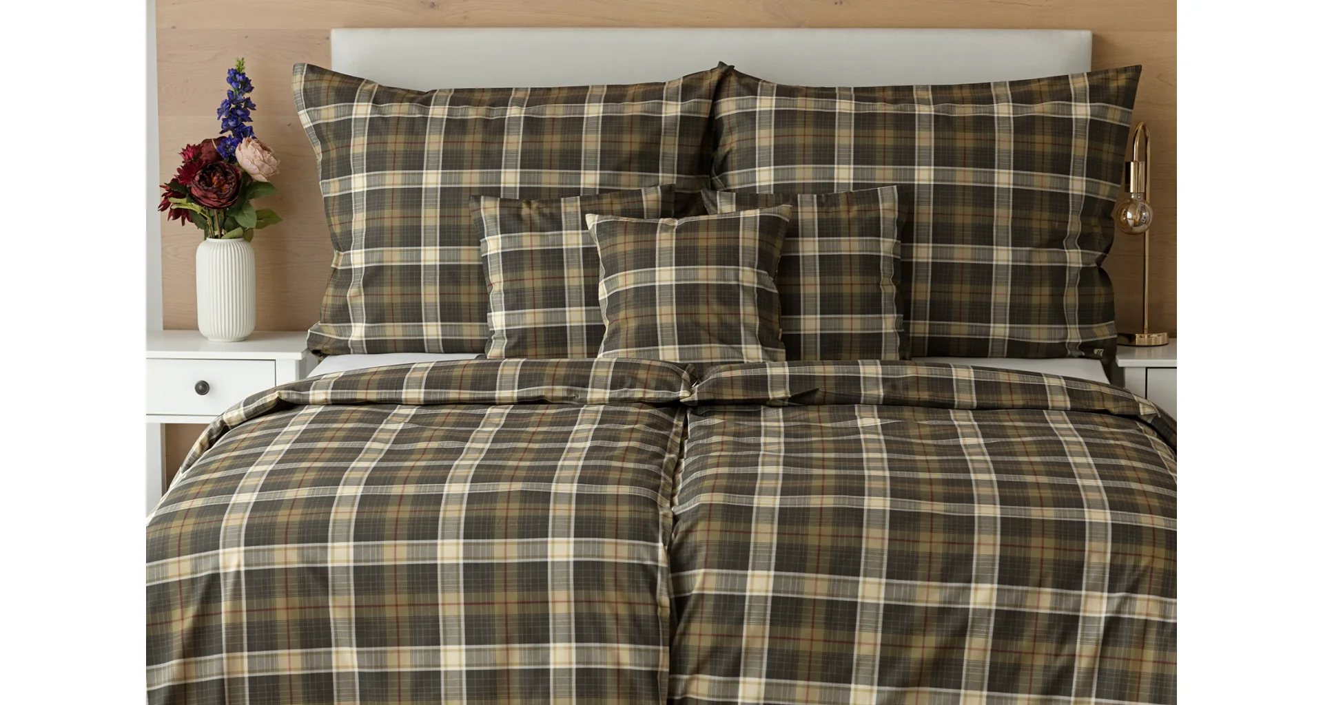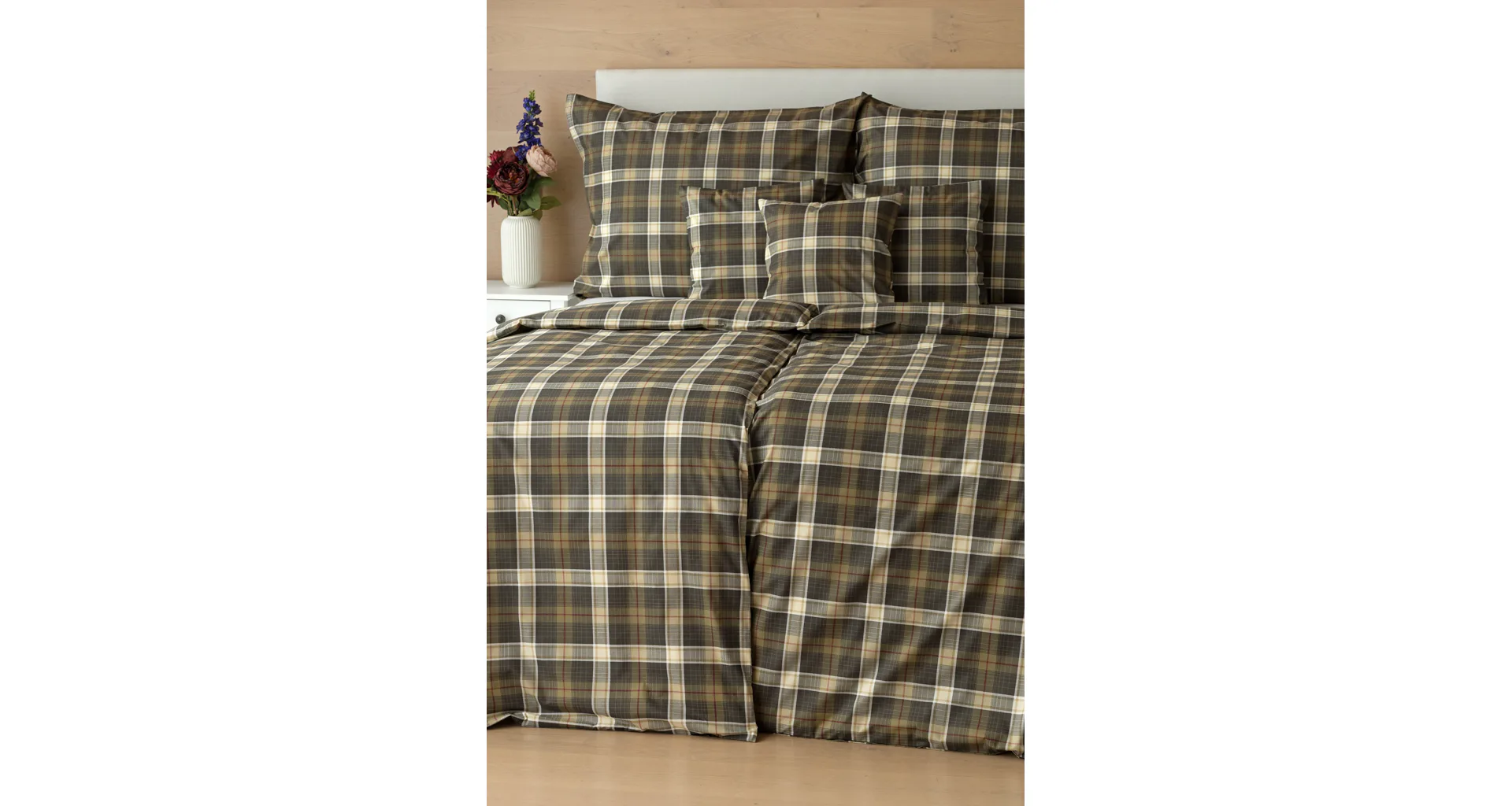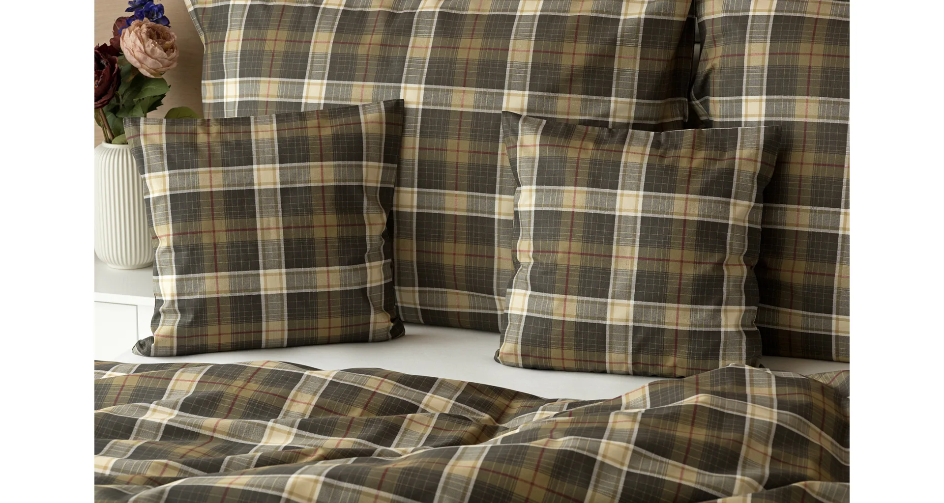 Sváteční atmosféru můžete vykouzlit i bez tradičních vánočních motivů. S ložním povlečením Dante bude vaše ložnice dýchat sváteční pohodou a klidem. Károvaný motiv tvoří odstíny hnědozelené a béžové protnuté tmavě červenou. Nechte se hýčkat a zachumlejte se do měkoučkého prémiového flanelu nebo do jemné bavlny deluxe.