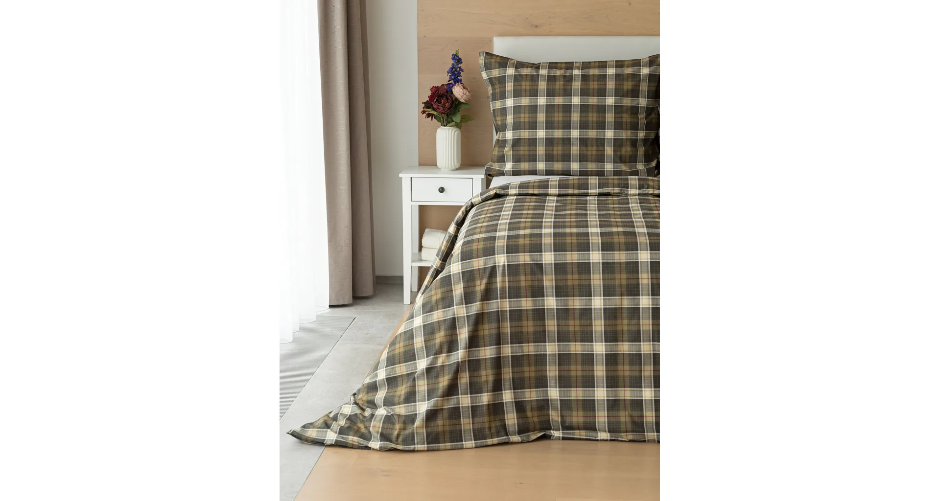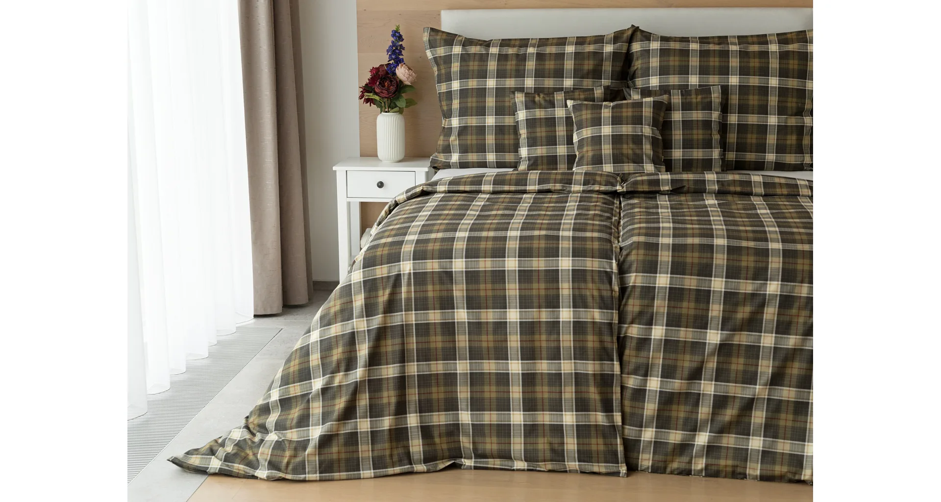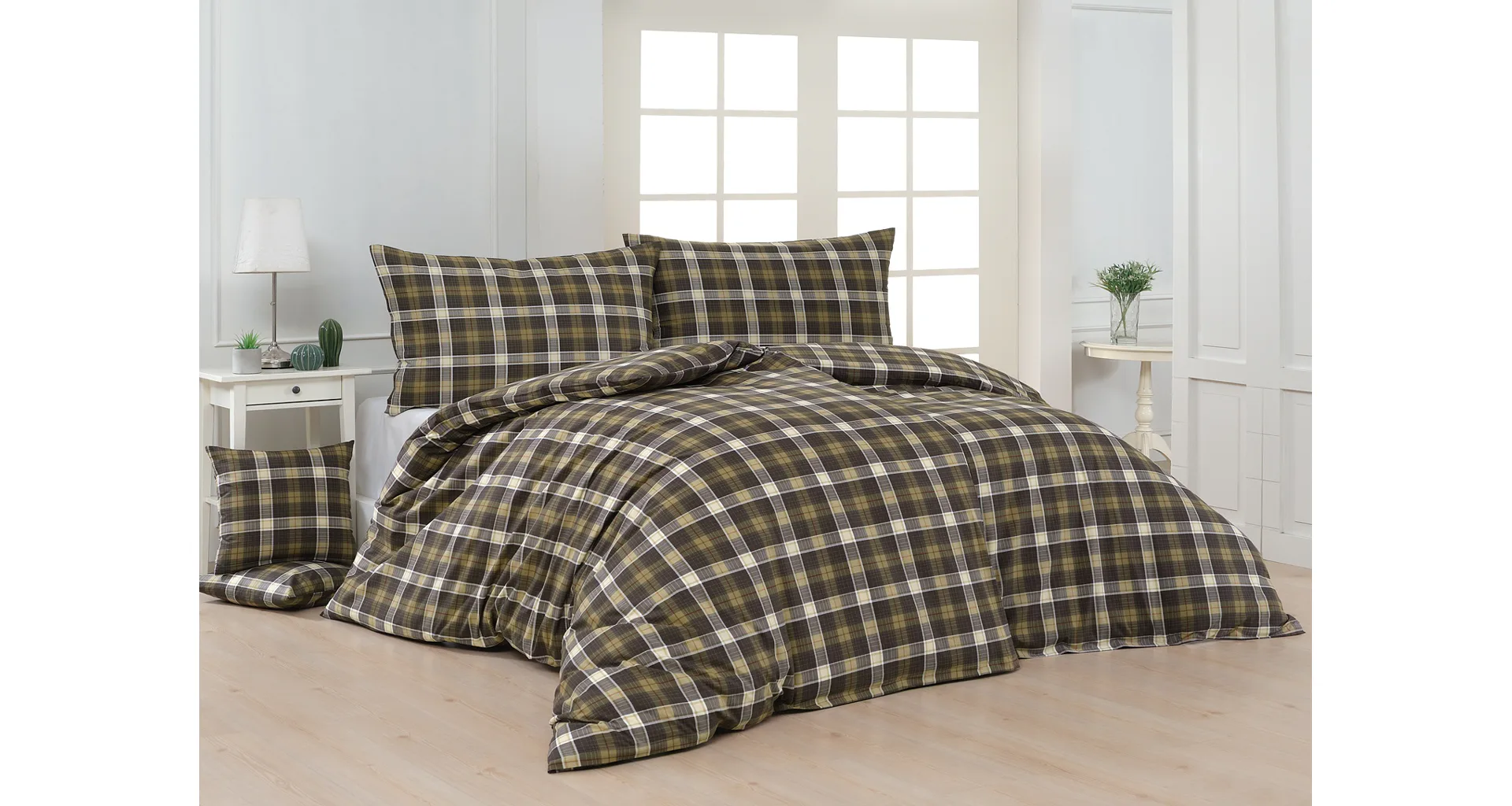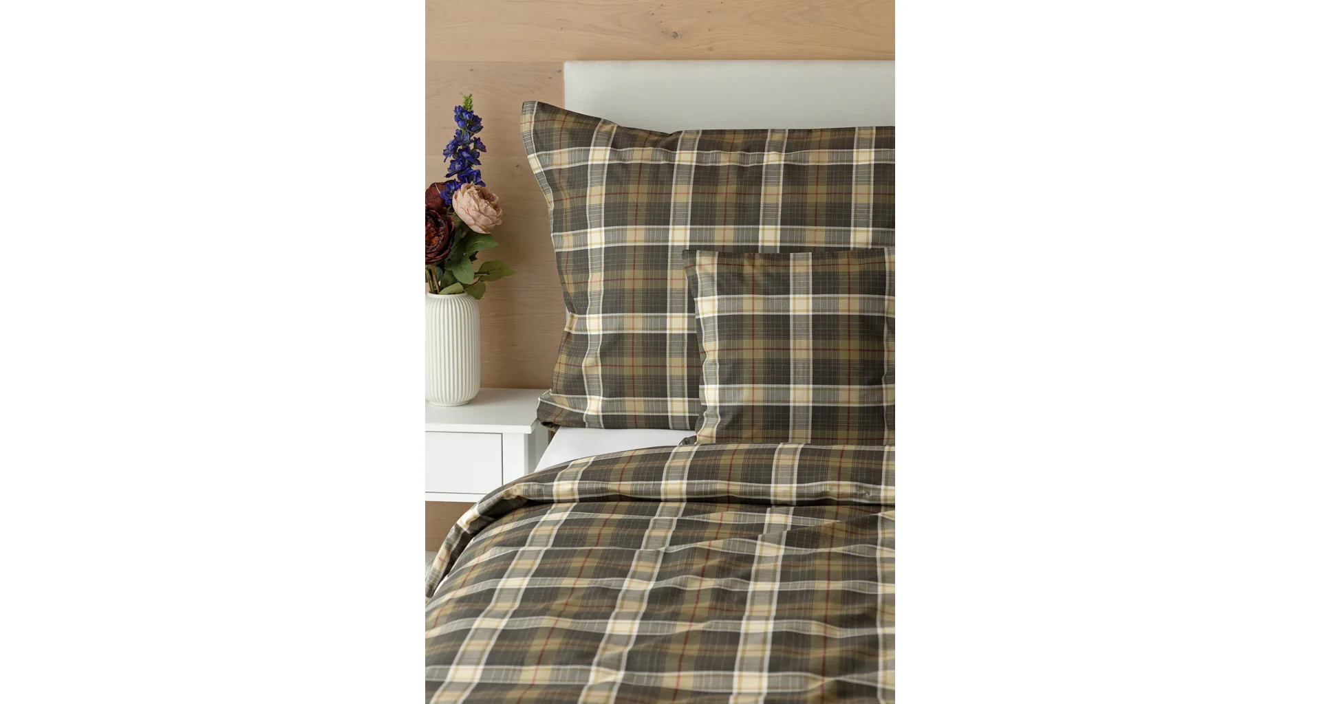 Sváteční atmosféru můžete vykouzlit i bez tradičních vánočních motivů. S ložním povlečením Dante bude vaše ložnice dýchat sváteční pohodou a klidem. Károvaný motiv tvoří odstíny hnědozelené a béžové protnuté tmavě červenou. Nechte se hýčkat a zachumlejte se do měkoučkého prémiového flanelu nebo do jemné bavlny deluxe.