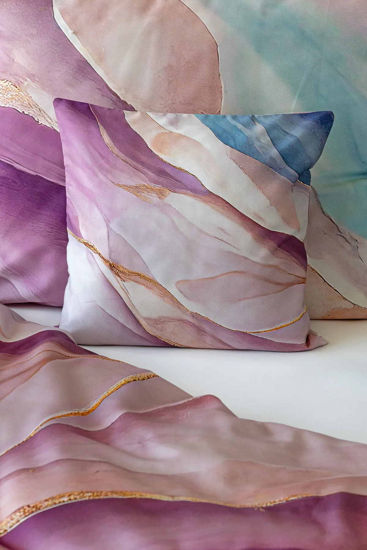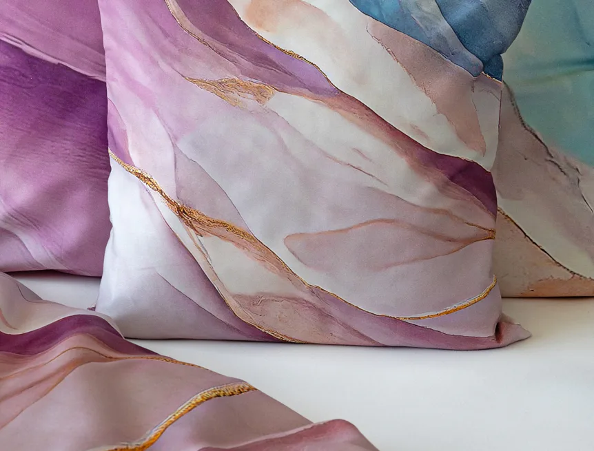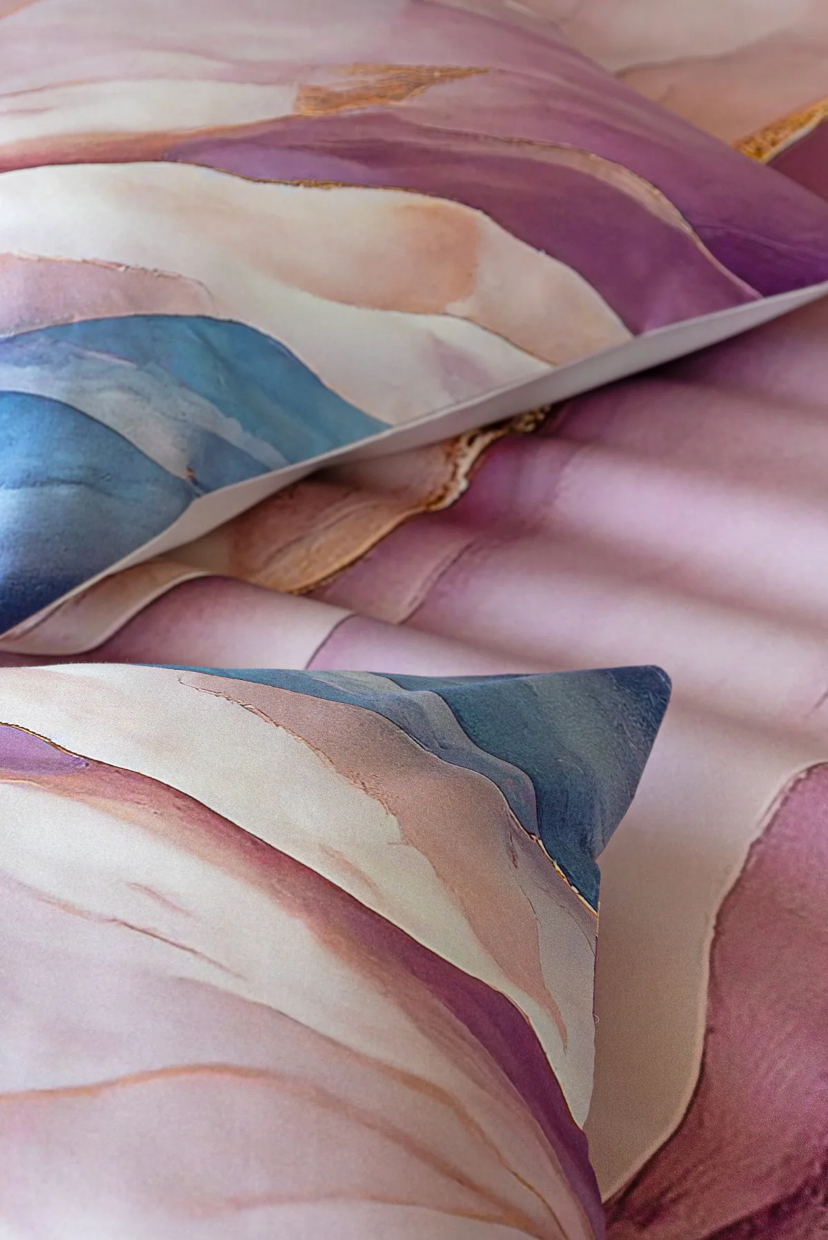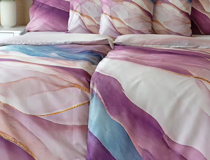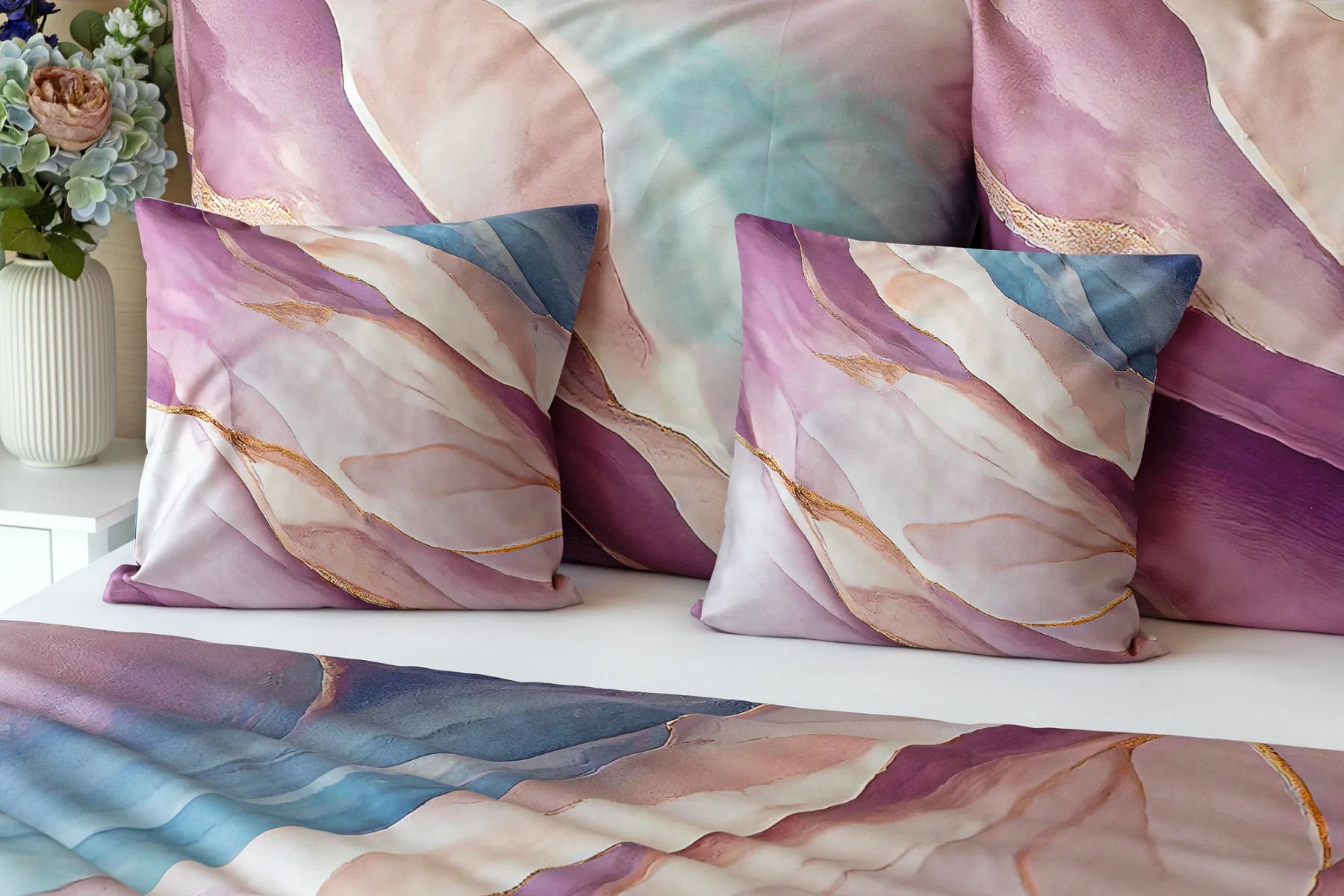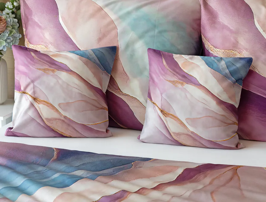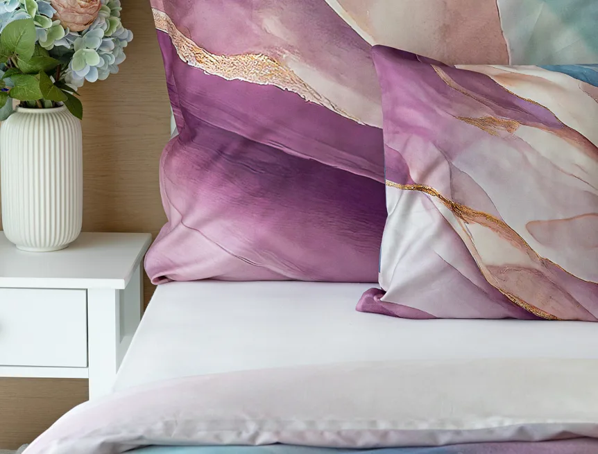 Saténové povlečení Dionna si vás získá na první pohled. Vychutnejte si dokonalé souznění pudrových, růžových, fialových a modrých tónů v tomto extravagantním vzoru. O váš pohodlný spánek se postará...