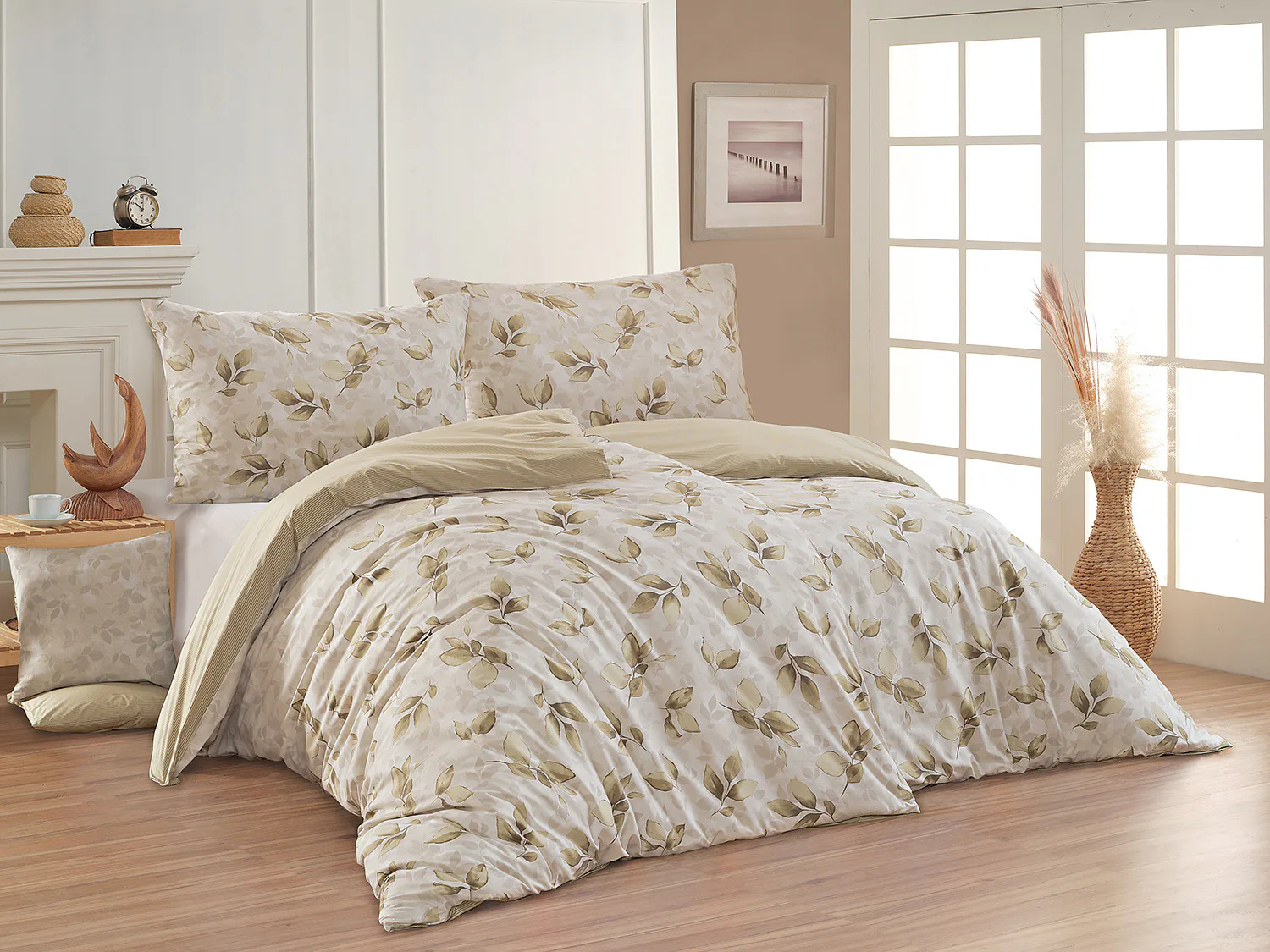Vneste do své ložnice klidnou a harmonickou atmosféru s bavlněným povlečením Dorian. Elegantní florální motiv v paletě béžových a olivových tónů působí nadčasově a snadno se kombinuje s dalšími doplňky. Přírodní barevná kombinace navozuje pocit pohody a vytváří příjemné prostředí pro kvalitní odpočinek. Díky oblíbenému oboustrannému provedení můžete při stlaní hravě experimentovat!