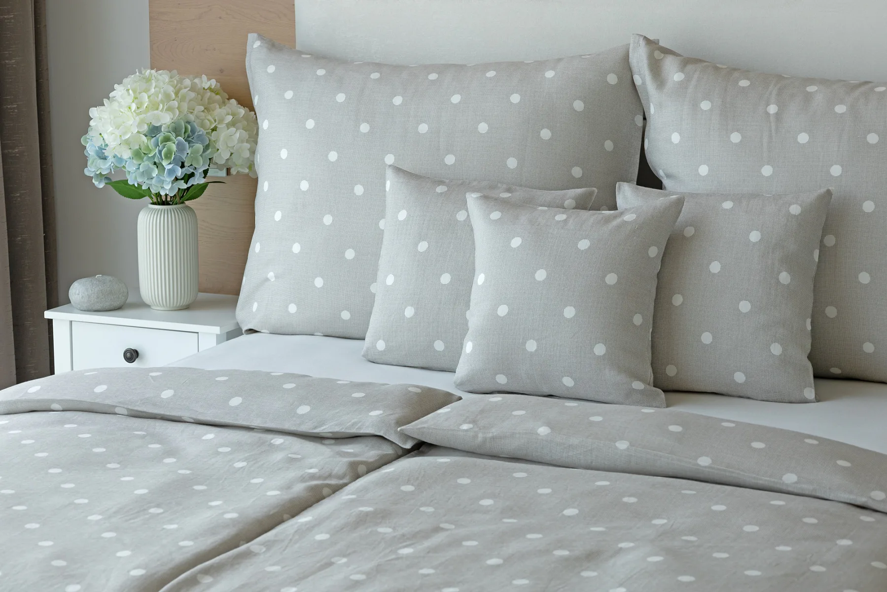 Objevte benefity jedinečného přírodního materiálu a dopřejte si nezaměnitelný komfort s naším lněným povlečením Dotté. Vzor s jemnými puntíky je jako stvořený pro tento ekologicky šetrný materiál a doladí k dokonalosti každý interiér s rustikálním nádechem. Podklad ložního povlečení není jednobarevný! Tvoří ho drobné malé tečky, které ladí vzor Dotté do přírodního šedého tónu.